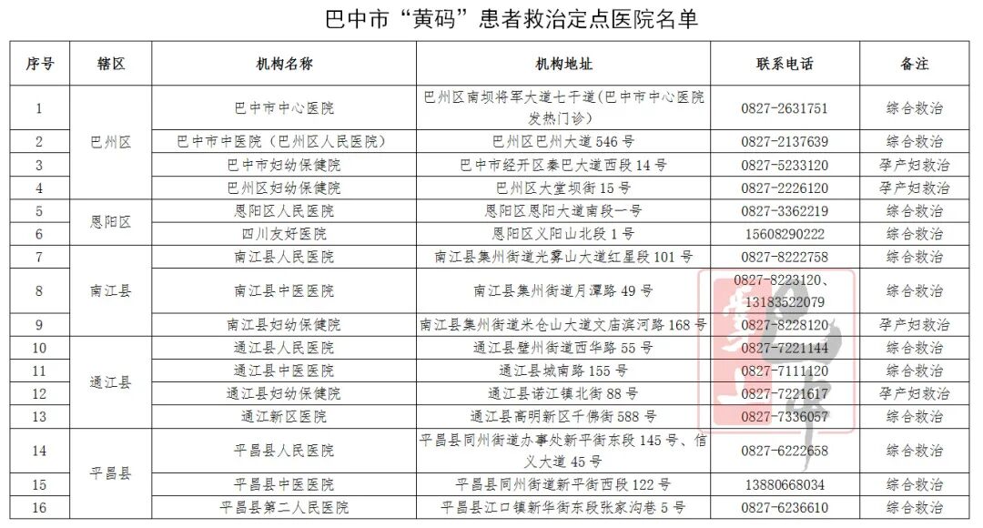 为有效应对新冠肺炎疫情防控,织密织牢疫情防控网,确保人民群众生命安全和身体健康,市卫生健康委公布一批涉及“黄码”人员核酸采样、“黄码”患者救治、“红码”患者救治及重点人群非新冠疾病救治定点医院名单。