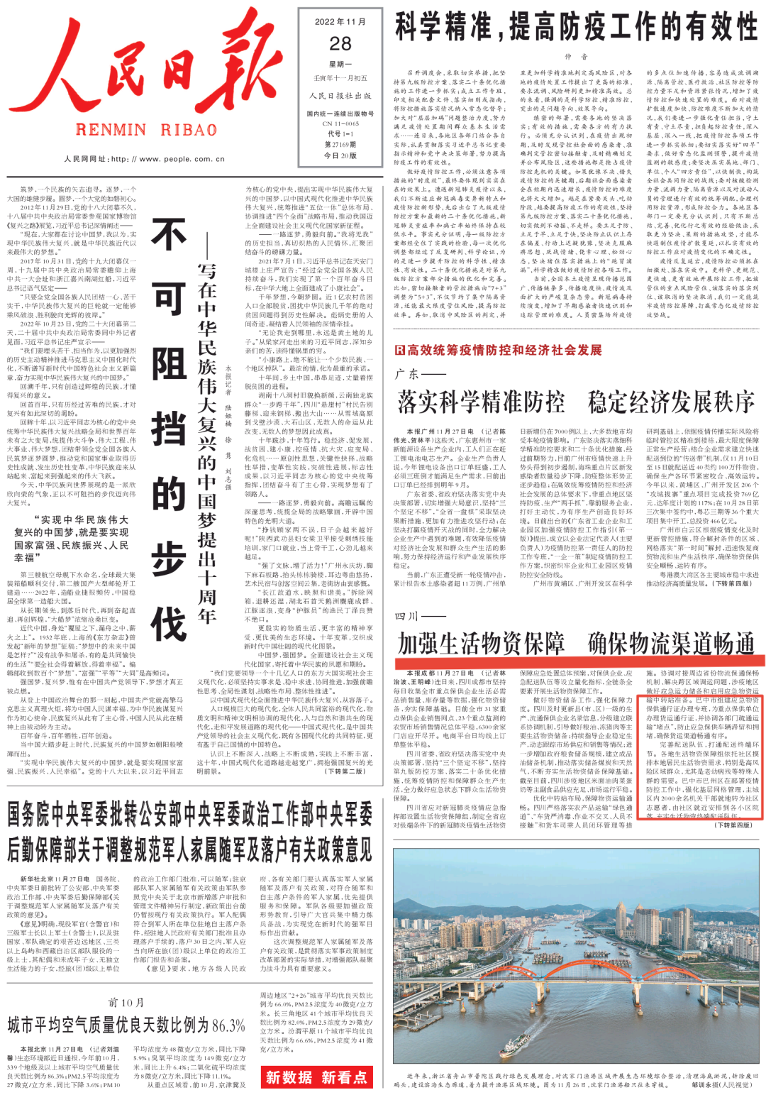 11月28日,《人民日报》第1版要闻版刊发文章《加强生活物资保障 确保物流渠道畅通》,报道了巴中市巴州区部署疫情防控工作。