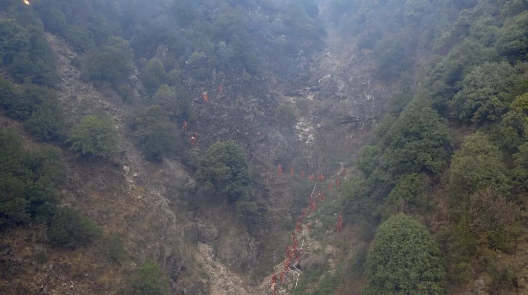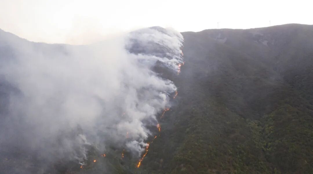 火场植被主要为青岗林和灌木,地形复杂,平均海拔2500米,坡度50—70度,气温13℃,微风1—2级。