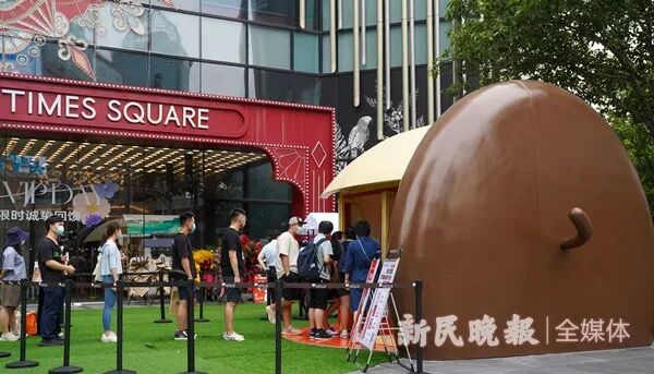 店铺看起来像一颗巨型橡果,歪立在上海华润时代广场的草坪上,想向大家证明:歪果子也能有美好的明天。