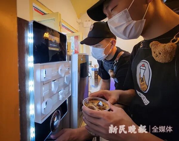 天保,天佑为客人制作冰拿铁。
