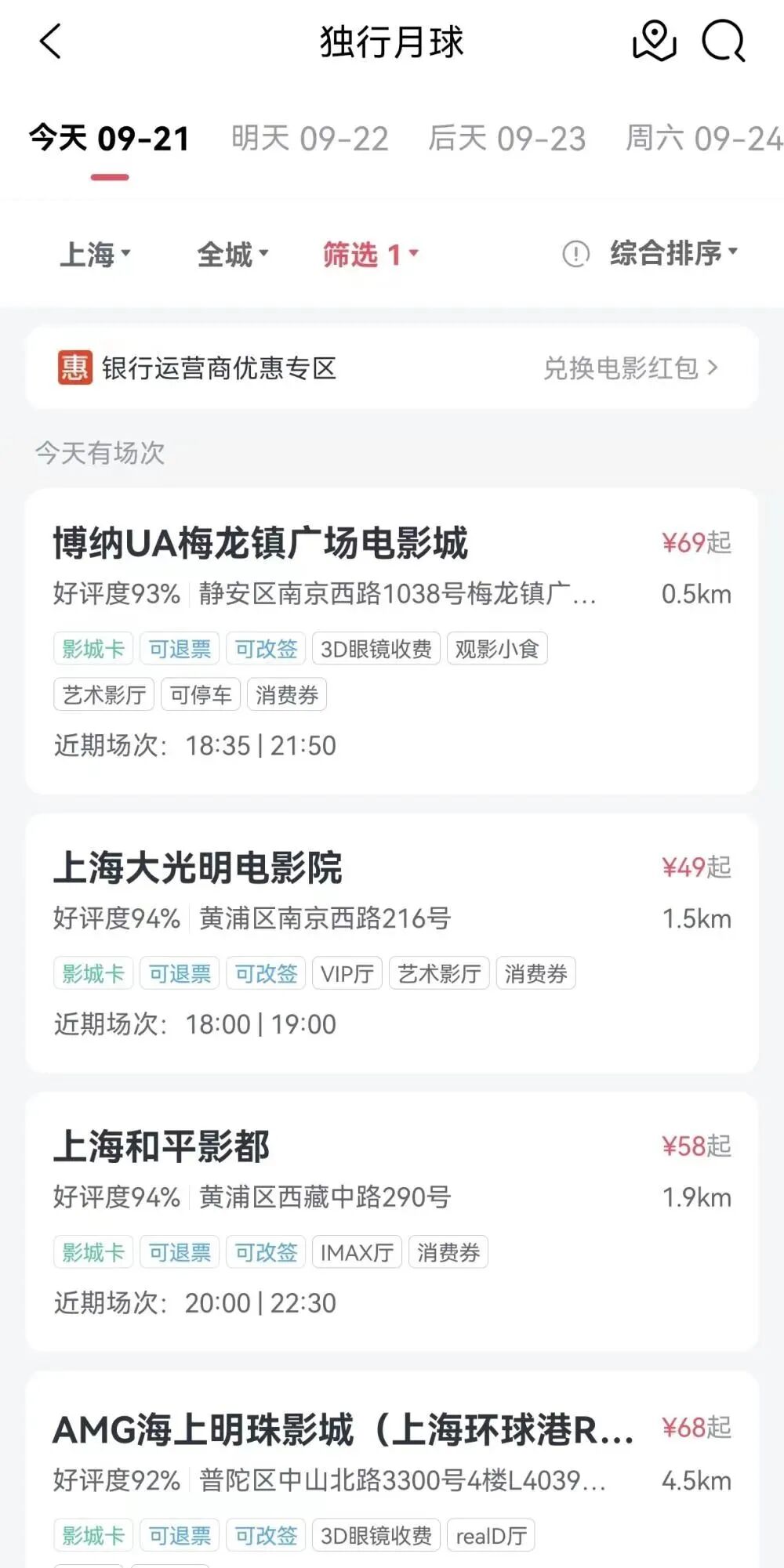 上海影院的“退改签”暂无统一标准