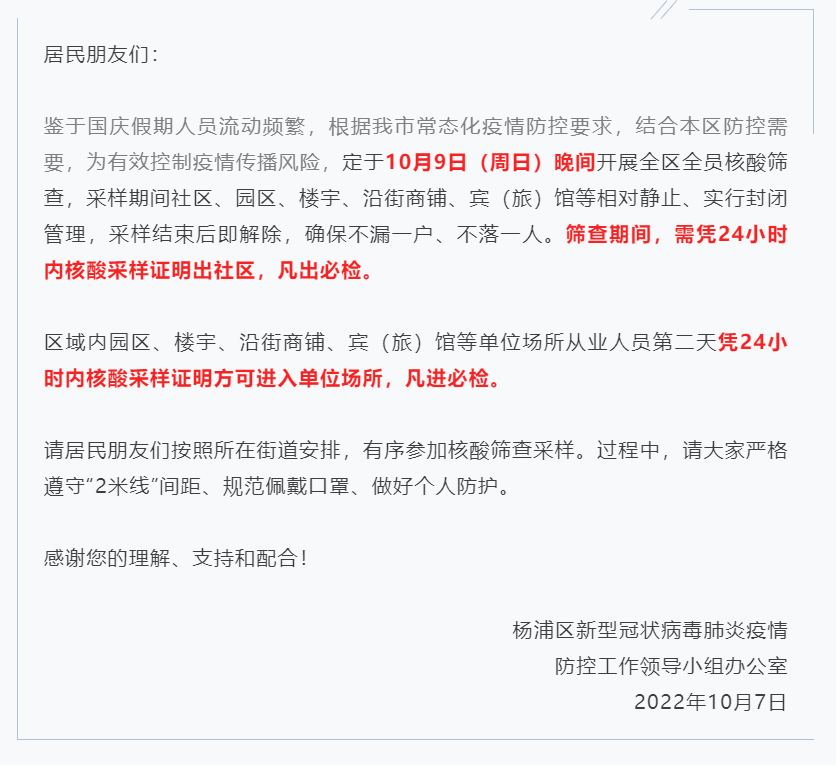 上海多区发布最新通知