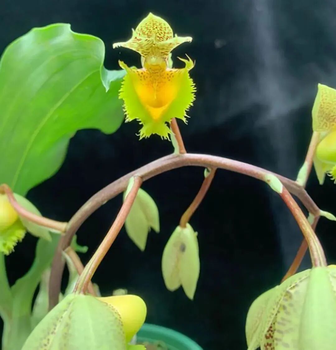 象耳兰从种子到成熟的瓶苗需要1年半至2年的时间,而从出瓶炼苗到长成开花株更需至少10年。园艺师们为其单独搭建了VIP区,使其在极端天气下,也能舒适享受“至尊”待遇。辰山植物园引入的苗龄超过20年,叶长约60厘米,叶宽约20厘米,这在兰花界是非常罕见的。