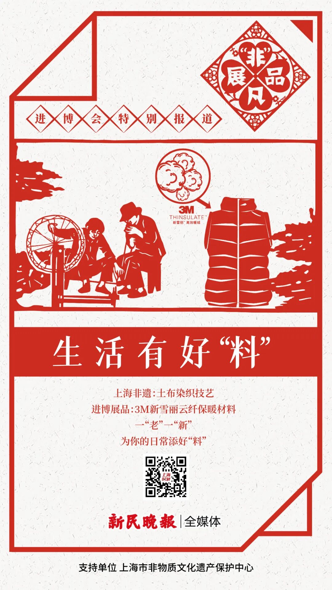 进博会上展品,总是最新、最高精尖、最时尚前沿的代名词;而我们上海的非遗,则是最传统、最有中国特色、最具文化底蕴的代名词。进博会的展品囊括了生活的方方面面;非遗同样是脱胎于老百姓的日常。进博会的展品更新迭代,屹立于潮头;非遗代代相传,历久弥新。展品与非遗,虽隔着时光的长河遥遥相望,但他们都是时间的馈赠,都凝聚着一代又一代“匠人”的心血。