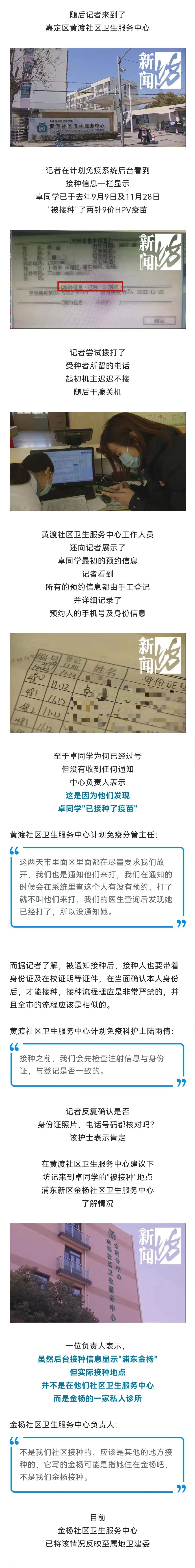 卓同学告诉记者,2021年11月12日,自己在学校对口的嘉定区黄渡社区卫生服务中心现场申请了九价HPV疫苗的接种,当时的预约号为480号,护士表示接种前会提前电话告知,放心的卓同学也没有过多关心。