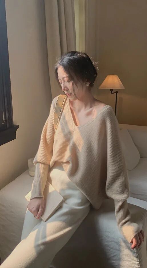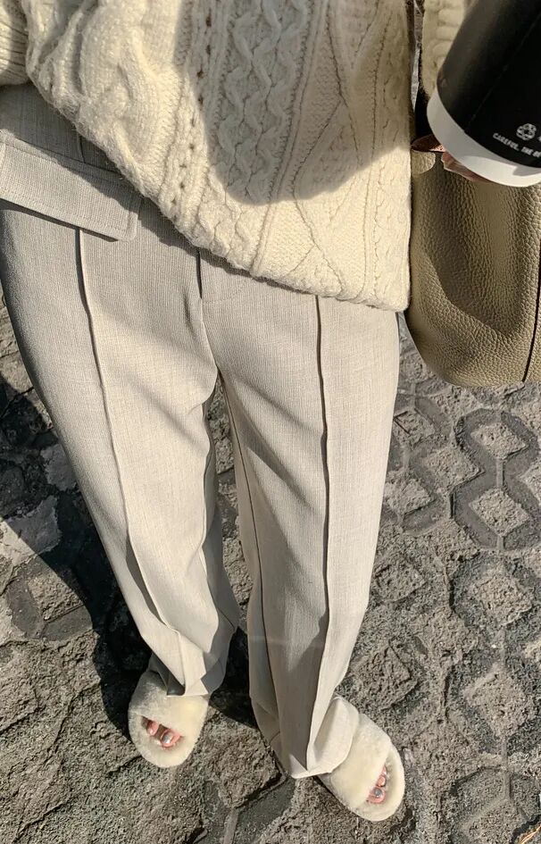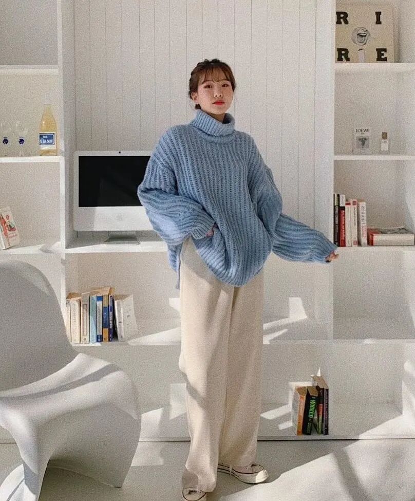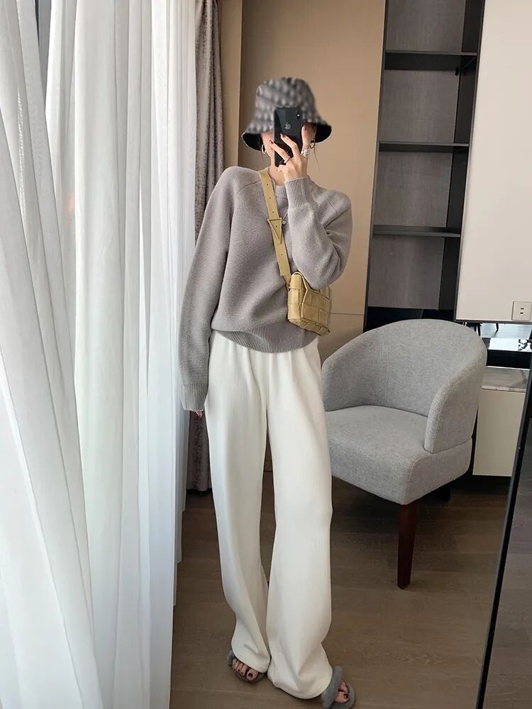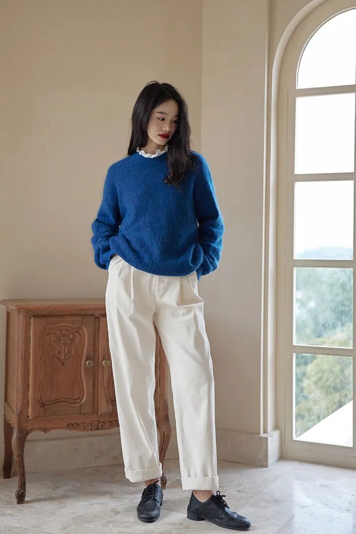 糯叽叽的豆腐裤,当然要搭配软乎乎的毛衣呀!整身都是一个绒绒的氛围感,温柔又可爱,简直就是韩剧女主的标配!