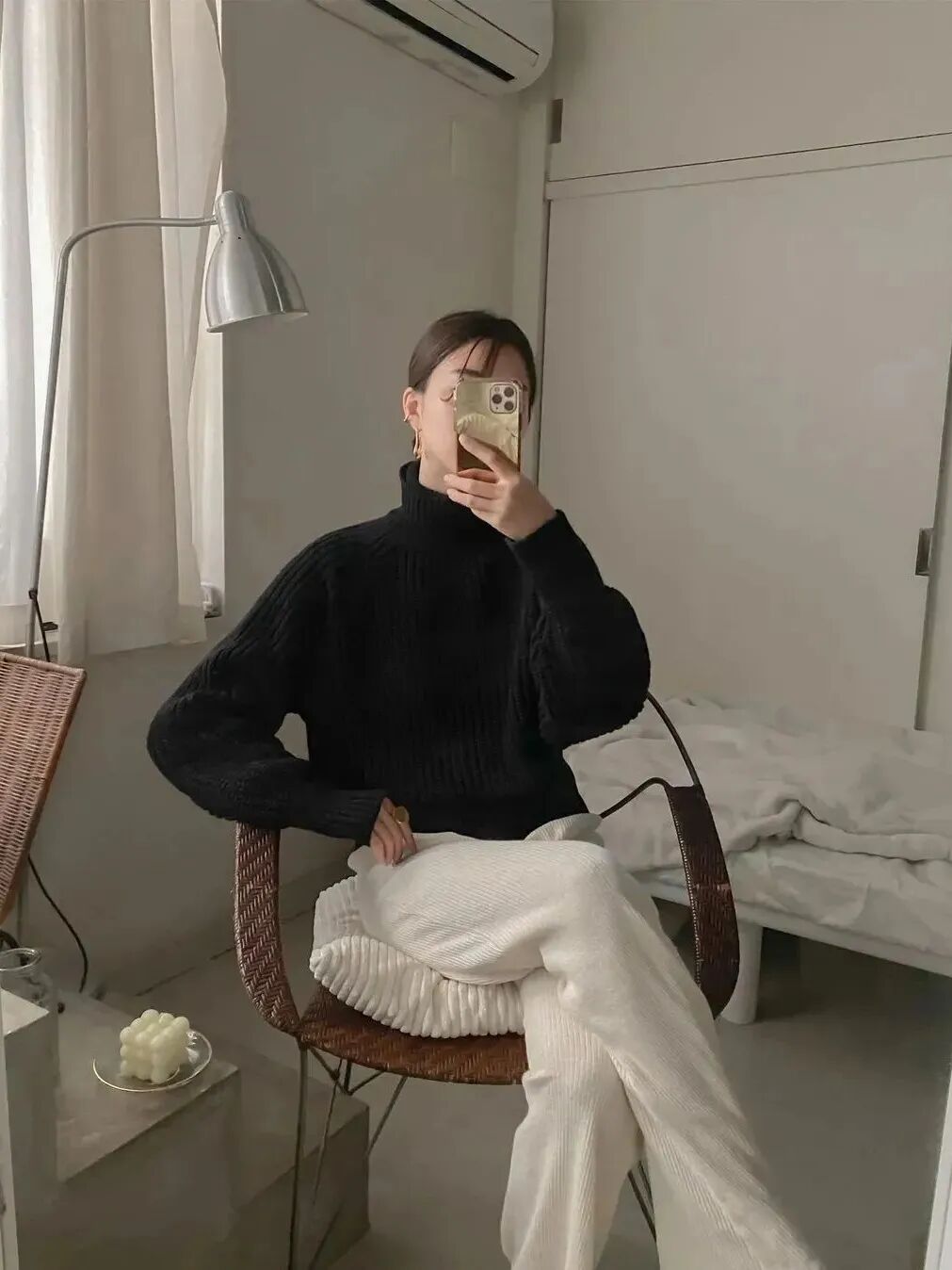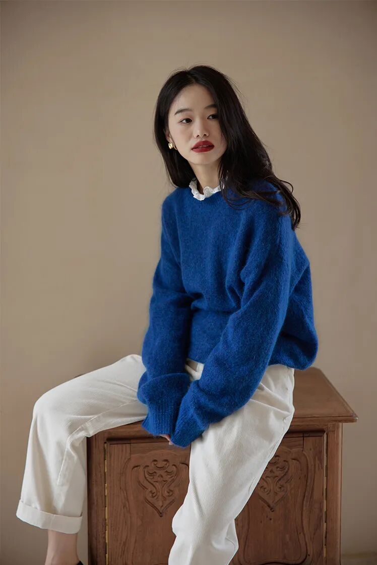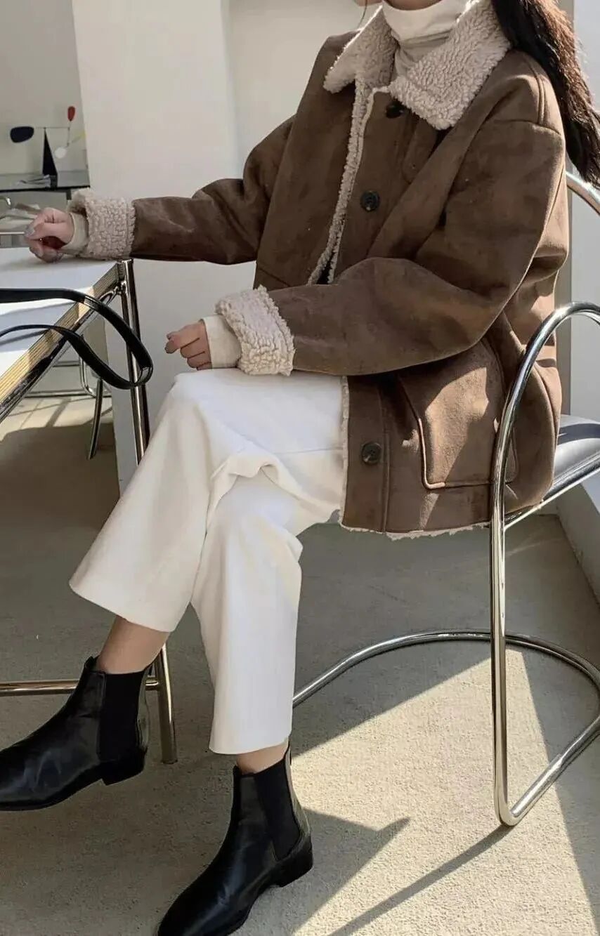 糯叽叽的豆腐裤,当然要搭配软乎乎的毛衣呀!整身都是一个绒绒的氛围感,温柔又可爱,简直就是韩剧女主的标配!