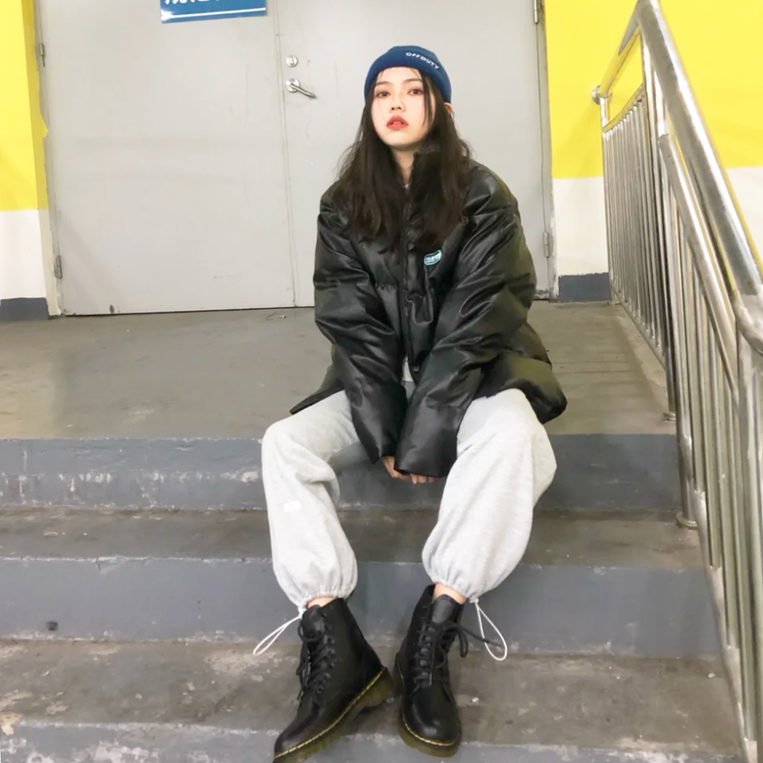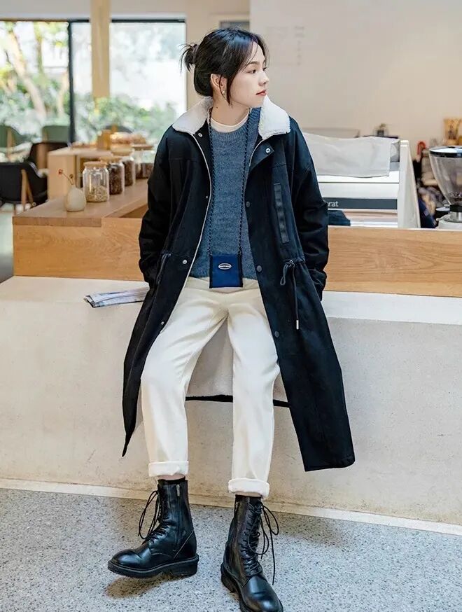 豆腐裤可盐可甜,马丁靴又辣又酷,两款超百搭的单品凑在一起,上衣那可不就穿啥都好看啊!