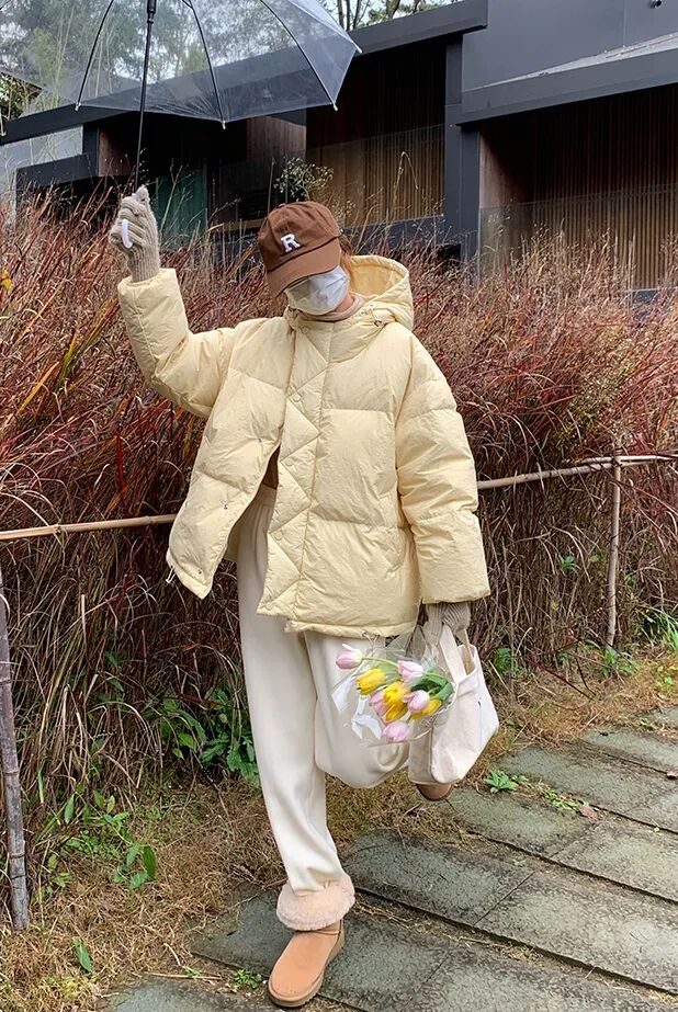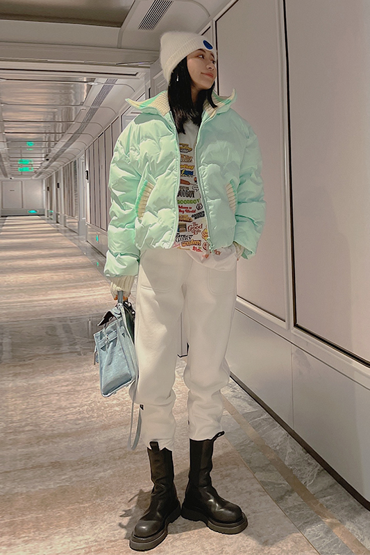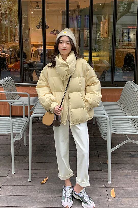 等到了冬天,各种蓬松可爱的「短款羽绒服」搭配豆腐裤就更合适了!保暖又不显臃肿,对于小个子女孩来说也很好驾驭~