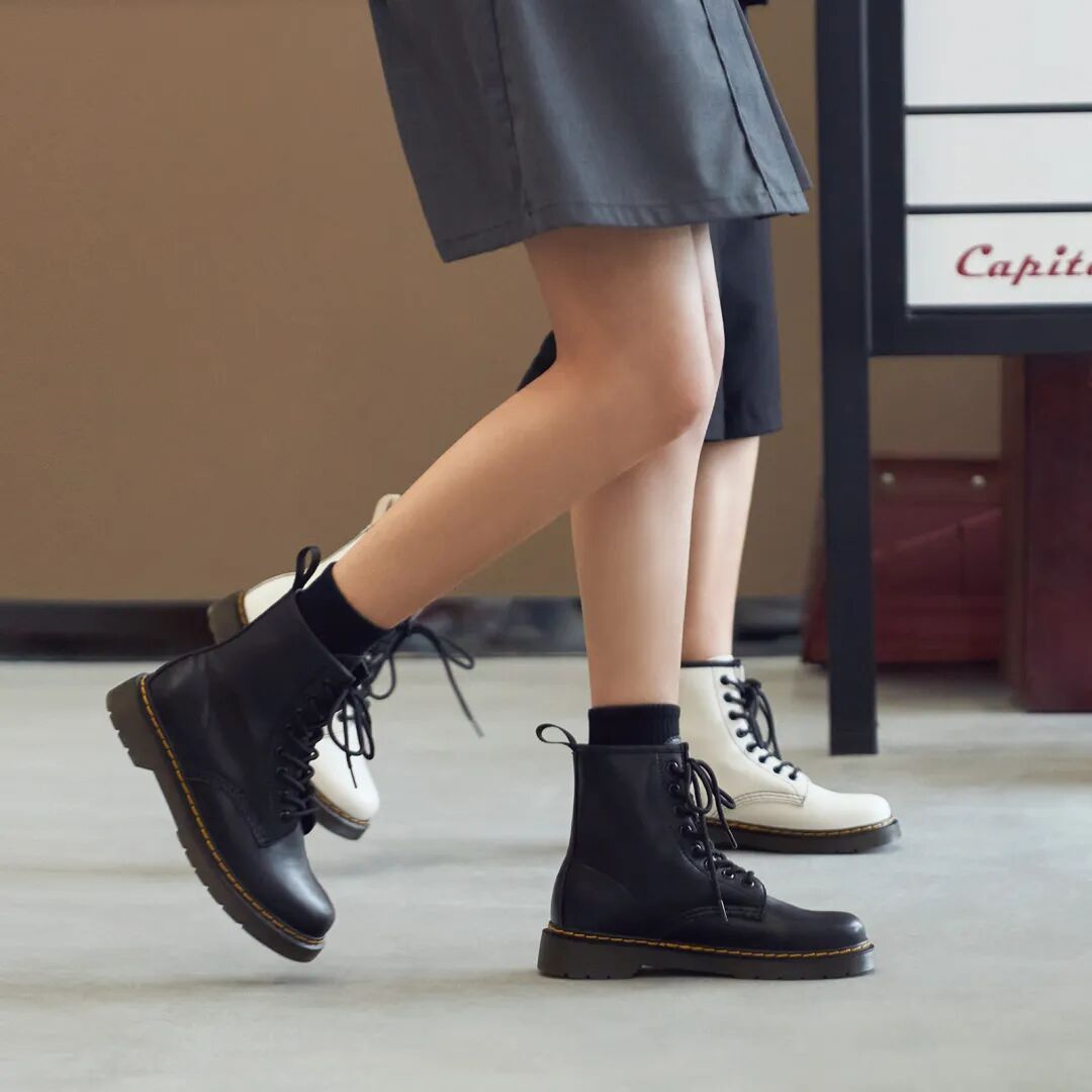 马丁靴根据孔数分成短筒、中筒、长筒,其中最不挑人的是 8 孔。对腿型身高基本都没有限制,轻松演绎甜酷拽姐范儿!