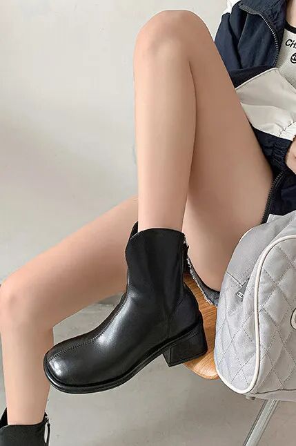 也可以选择没有绑带的短靴,整体线条流畅,皮面柔软光滑,风格上会更秀气一点!