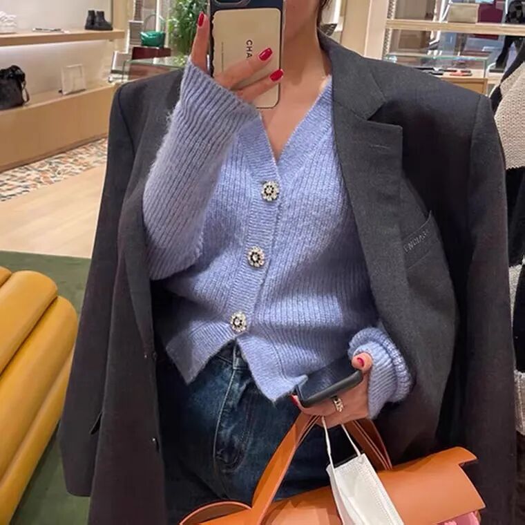 精致的扣子让这件开衫自带配饰,无需再费心搭配珠宝首饰就能展现出华丽高级的女性魅力。
