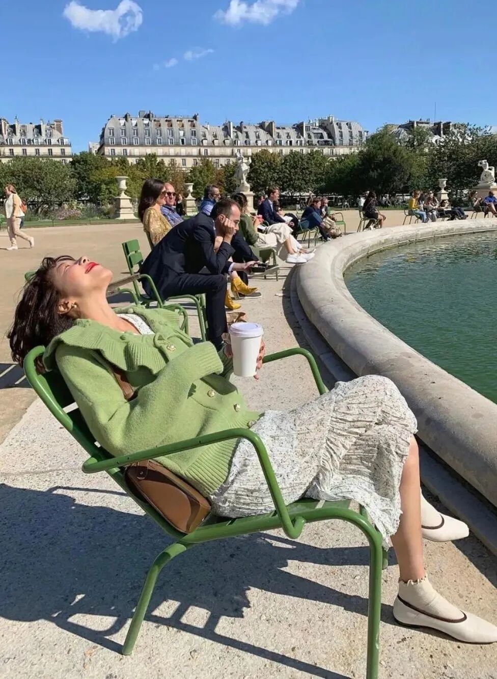 再搭配芥末绿的小香风短裙,时髦感非常强。适合对着装要求低、工作氛围轻松的职业。