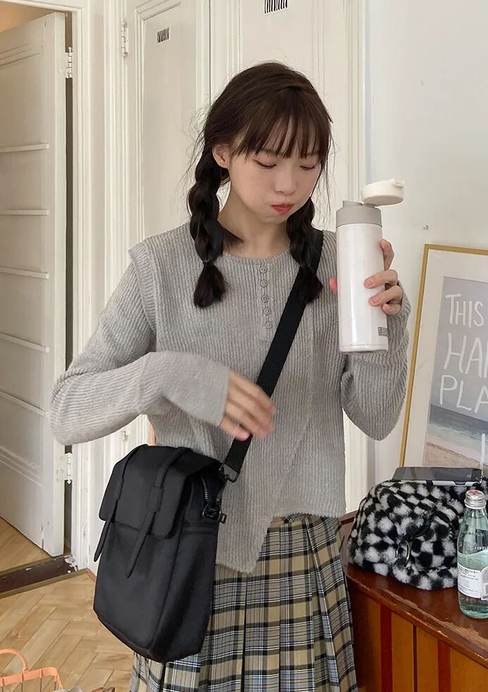 普通的小翻领毛衣见多了,就会特别爱那些带着不规则设计的。