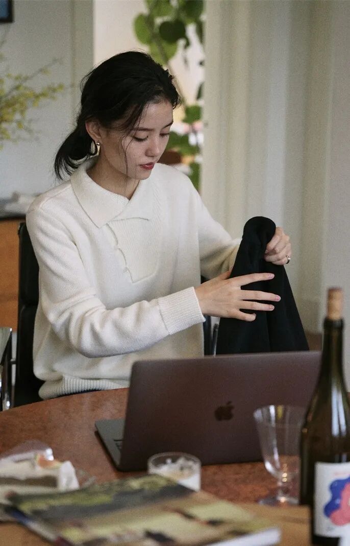 例如下面这款最让我喜欢的就是领口部分,扣袢与扣子之间的拉扯,松紧有致。日常搭配黑色呢子裙,书卷气中夹杂着一种浪漫氛围感。