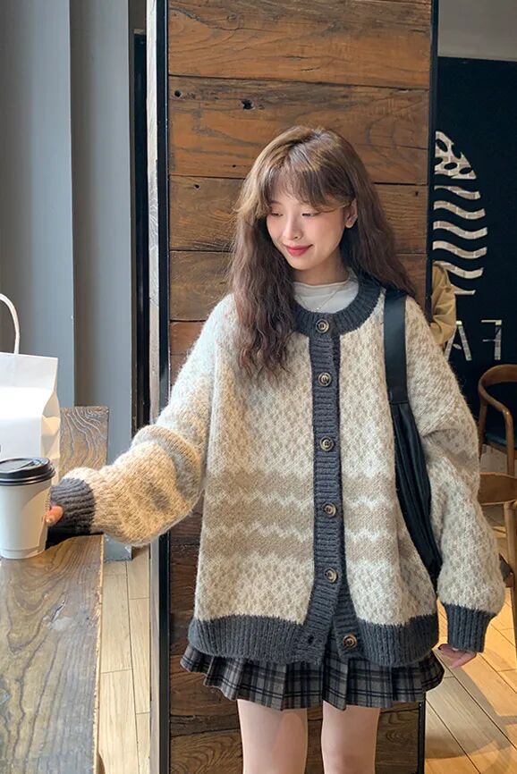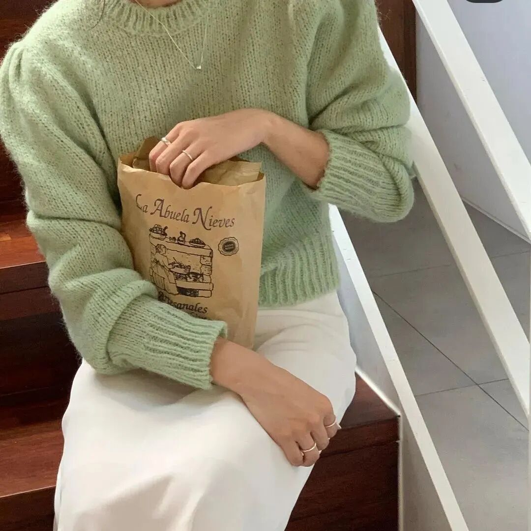 如果偏冷的话,厚实的古着感毛衣就是更好的选择了!经典慵懒的宽松版型,里头塞打底、秋衣、保暖衣都没问题。