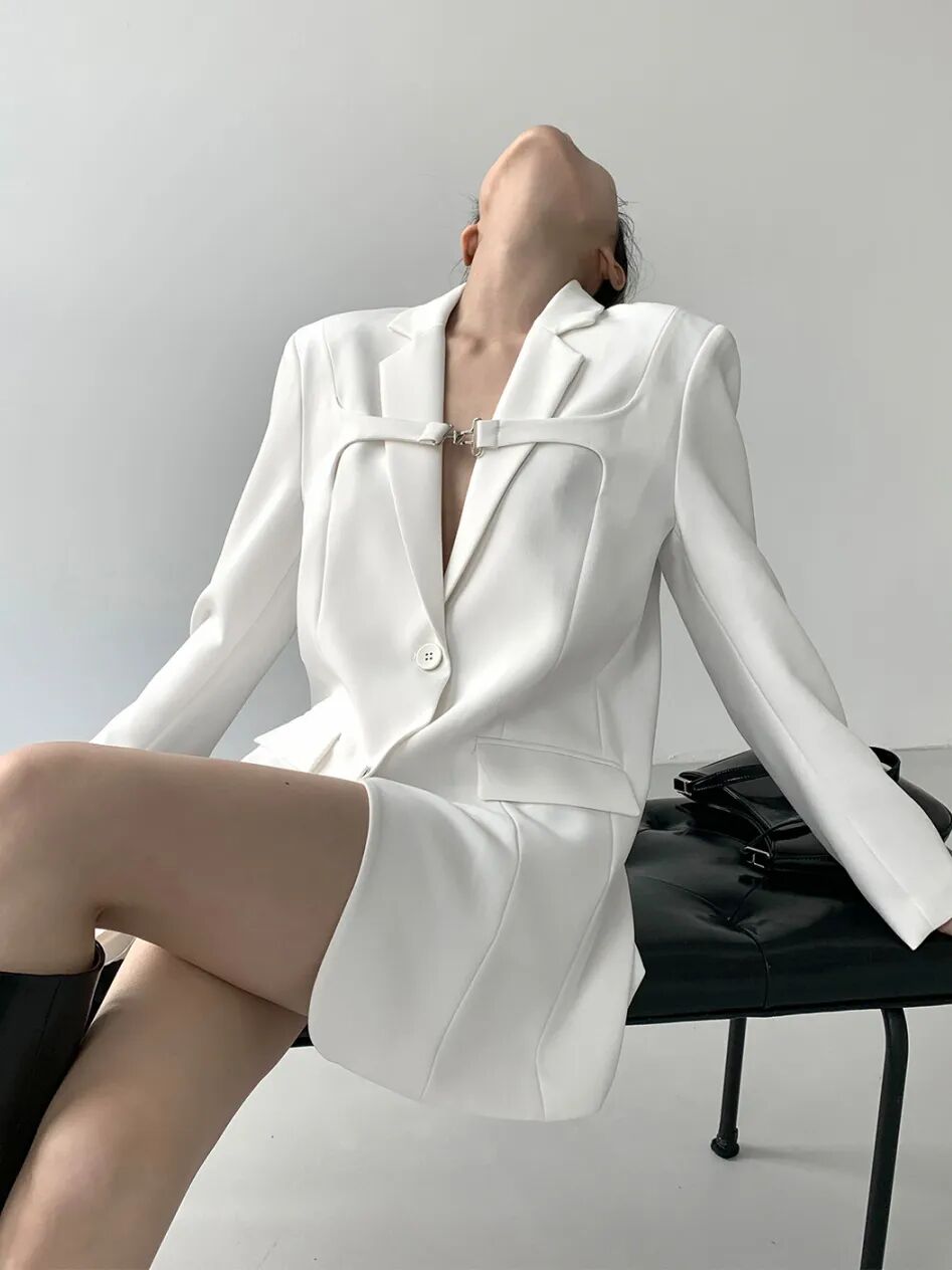 在中性风单品中融入镂空、流苏等柔和元素,又或是在曲度大的单品中加入硬朗感设计,来达到一个「曲直平衡」,性感得刚刚好。