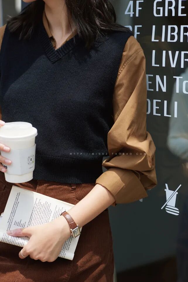 另外还有很多学院风的单品,例如牛角扣大衣、毛织马甲、半高领拉链卫衣……上身就秒回校园时代!