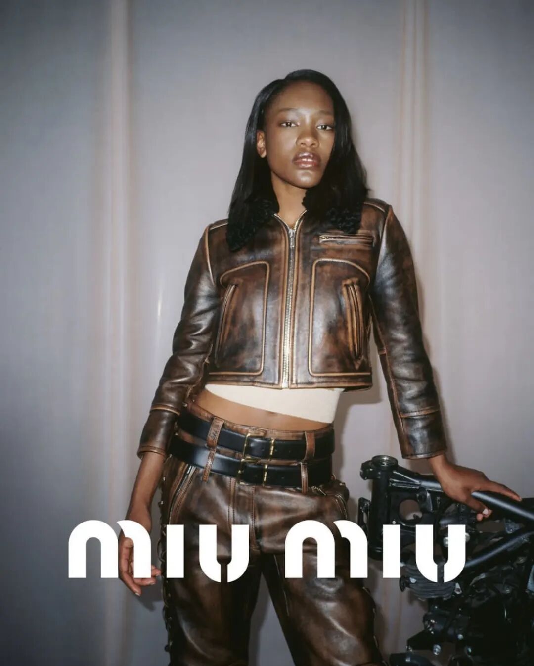 姐妹品牌 Miu Miu 的复古夹克也少不了。