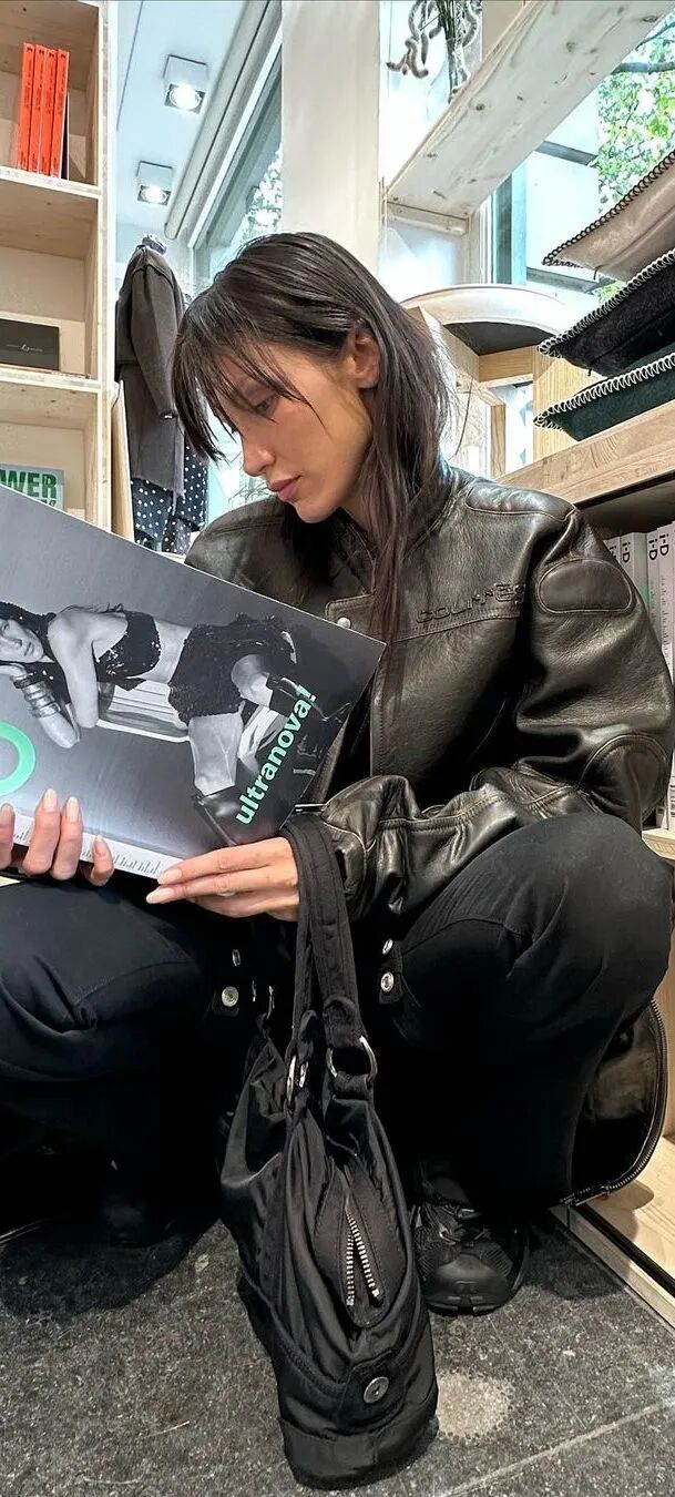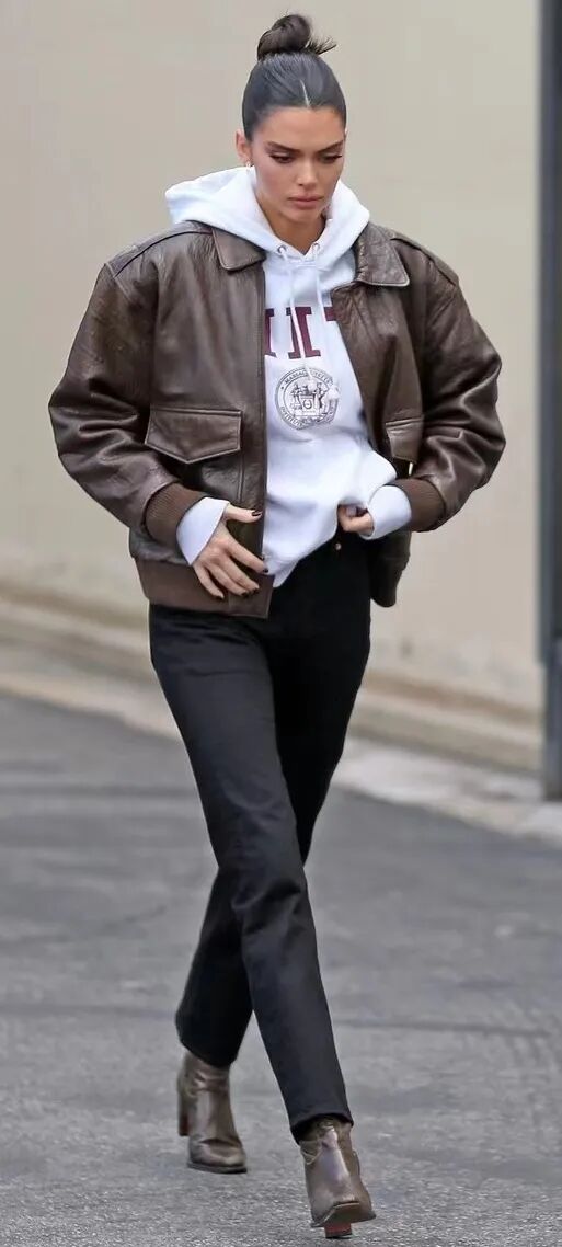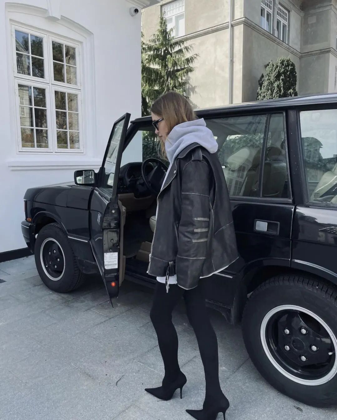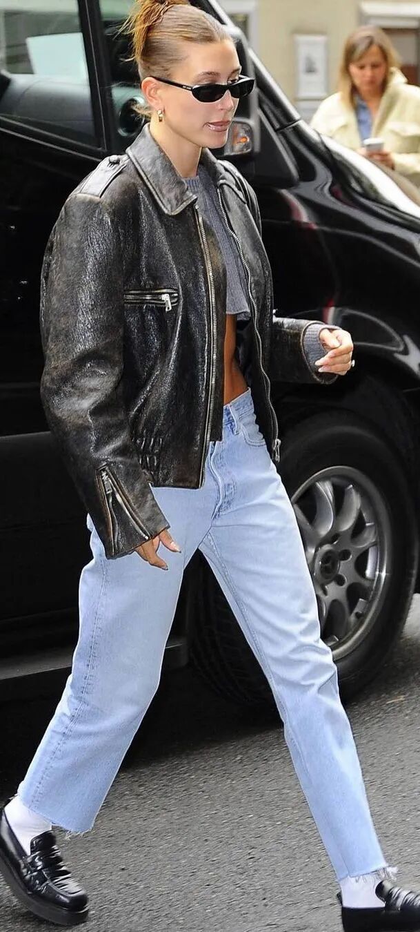 所以不止 Hailey、Elsa,像 Kendall、Bella 也是古着服饰的 “资深用户”。尤其是秋冬季节了里磨旧效果的皮夹克,可以让她们看起来与众不同,并且很有个性。