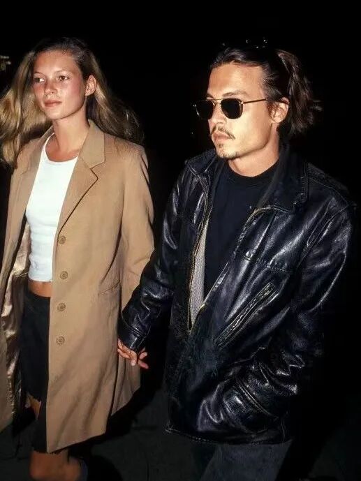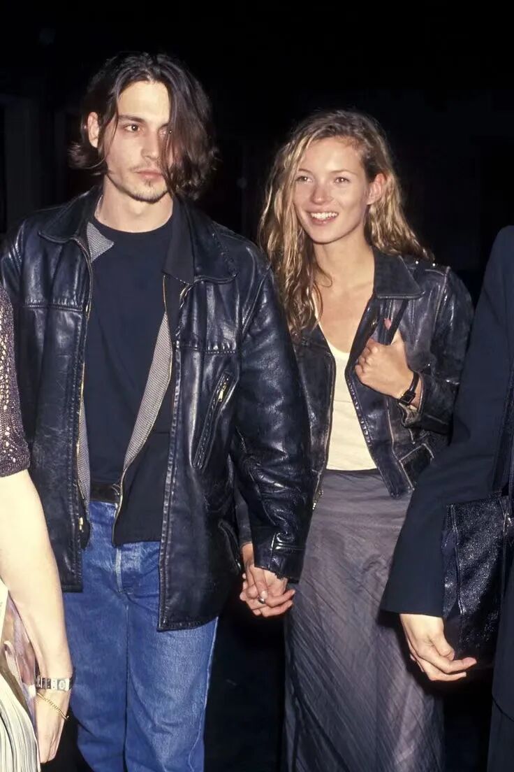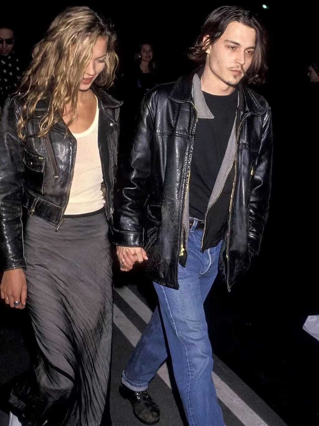 今年大热的做旧皮夹克,不禁让人联想到 Kate Moss 和 Johnny Depp 这对 90 年代金童玉女的经典造型。