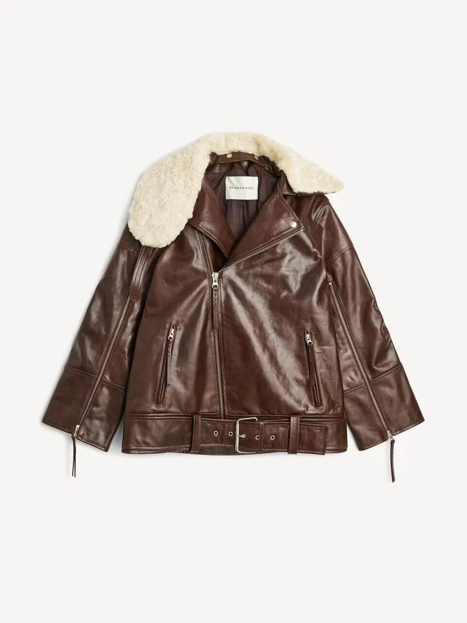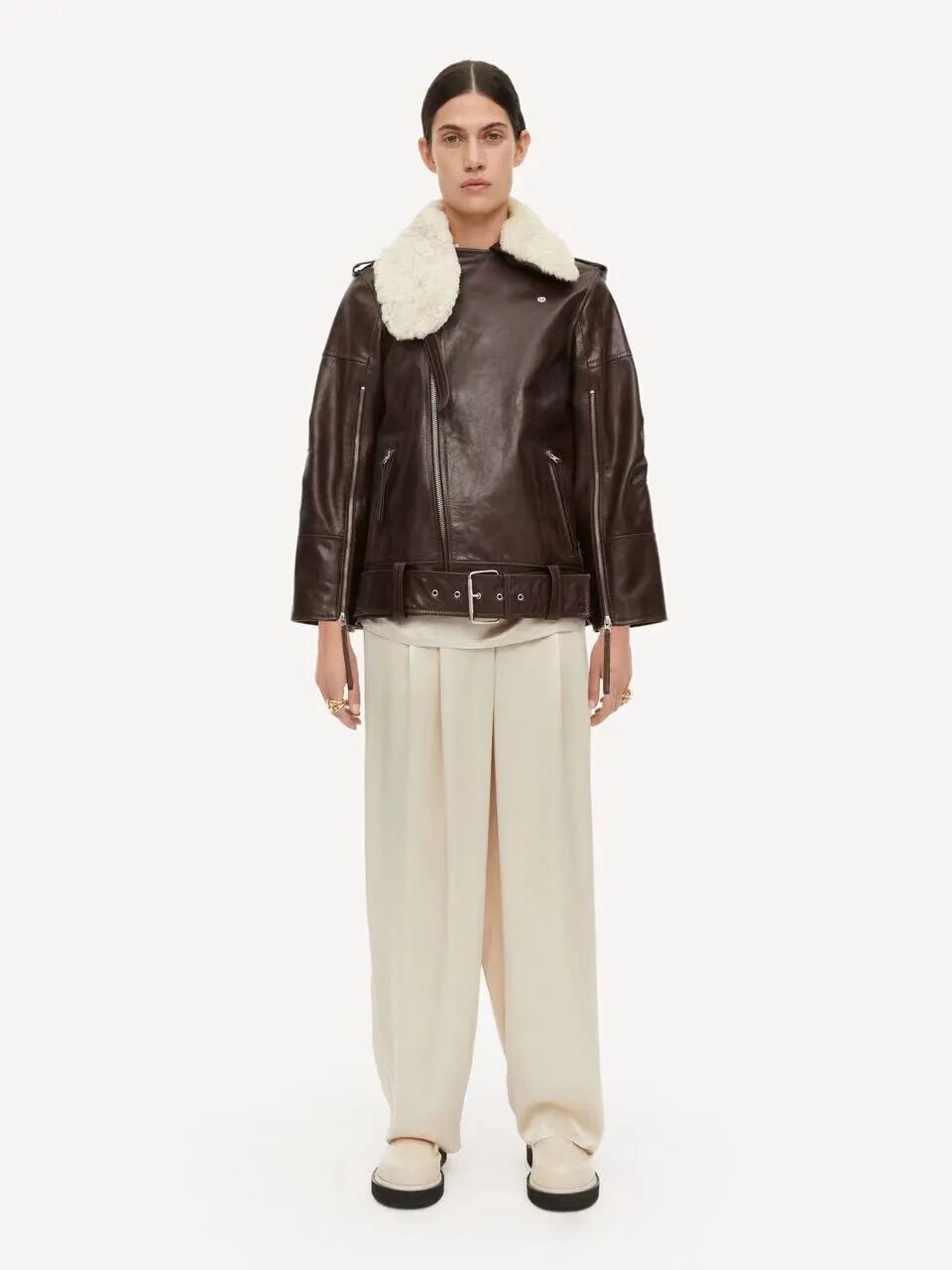 时髦可爱又容易驾驭的,是这两件复古短款。柔软的软羊革搭配可拆卸羊皮毛衬衫领,又好看又有型。