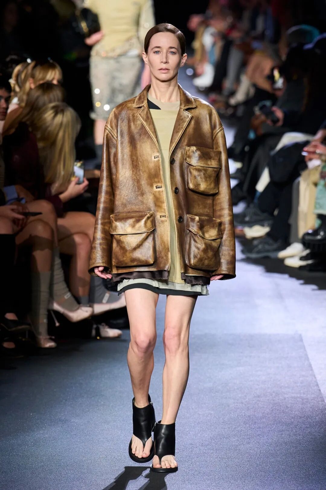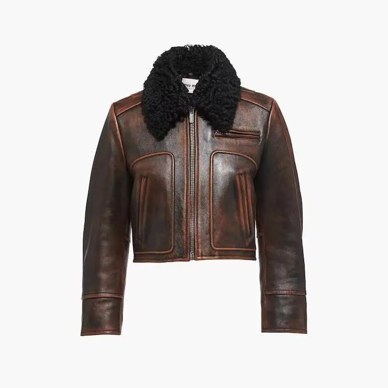 顺应这股怀旧风潮,越来越多时尚品牌开始设计做旧质感的皮衣,从大家熟悉的 Prada、Miu Miu 到小众人气牌 Lioness、Mentlove 等,都推出了有型的复古夹克。不同价格,多元选择。