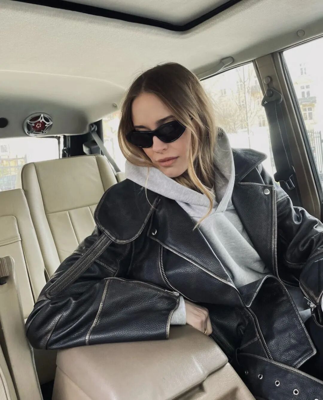 不光是 Hailey,穿衣很有一套的超模 Elsa Hosk,也是古着皮夹克的忠实粉丝。所穿的复古皮衣,大多也都是从 Worn Vintage、194 Local 这类古着店淘来的旧款(不拘设计师作品还是平价品牌)。