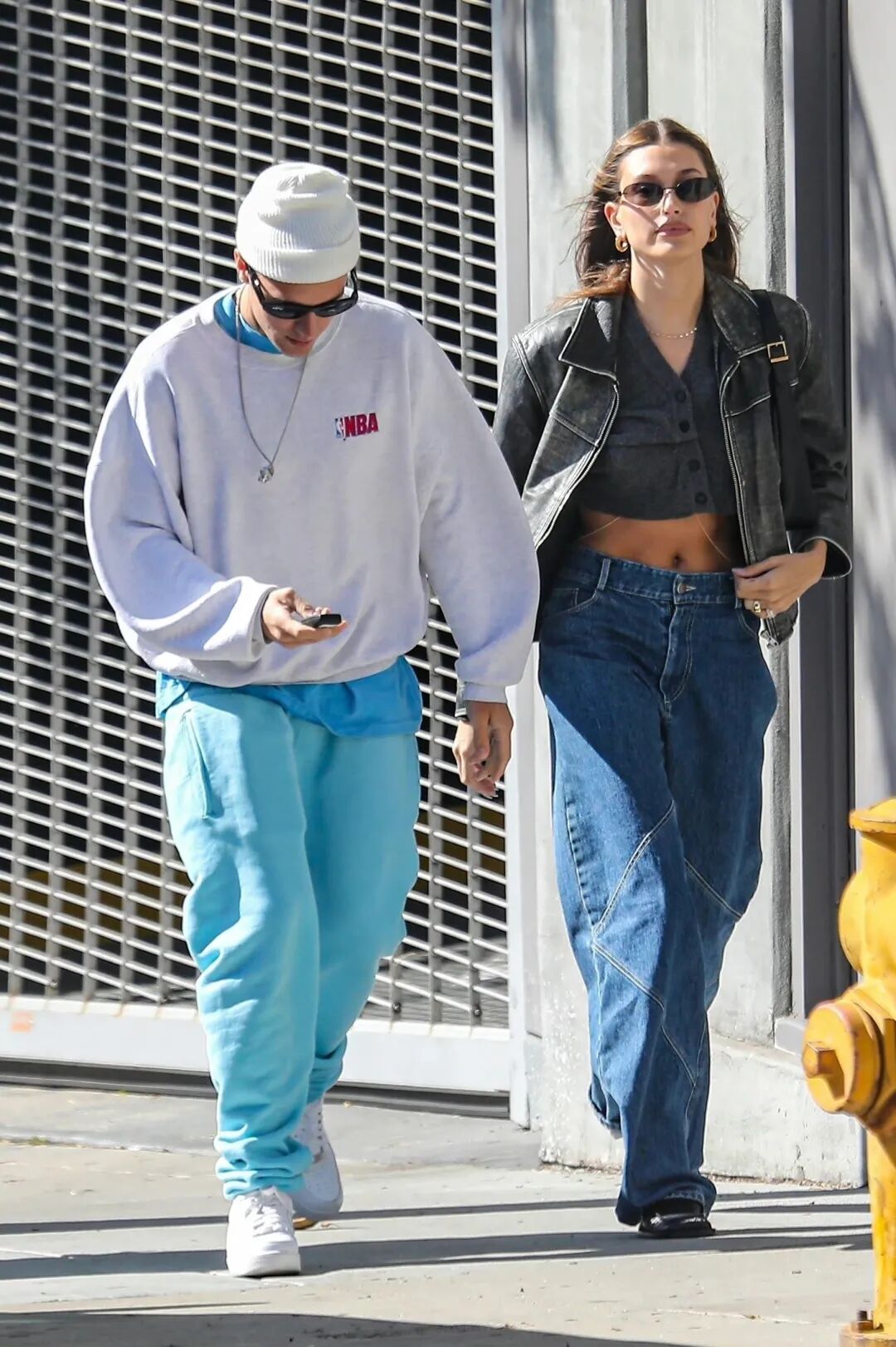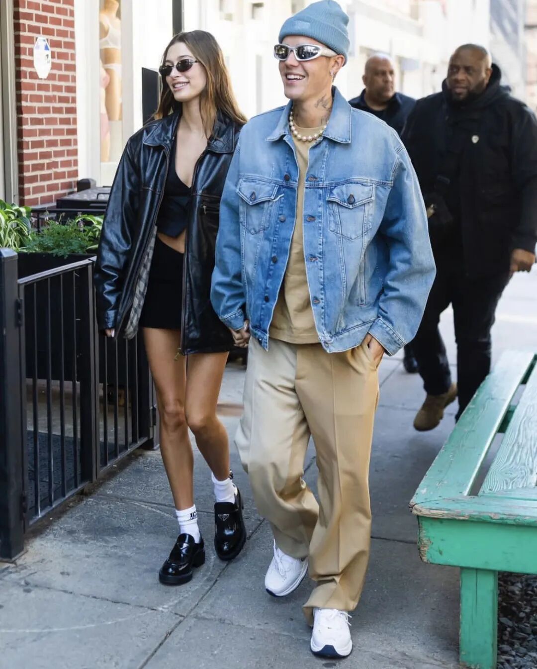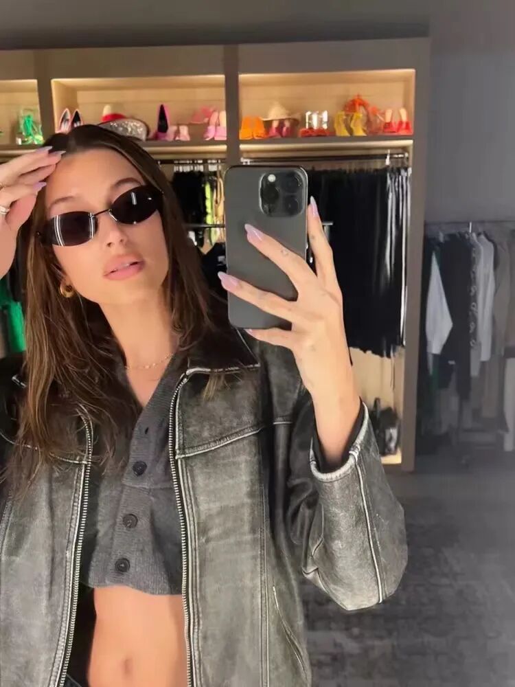 最近刷到了 Hailey 的新街拍:复古皮夹克内搭瑜伽服,脚踩 Prada 毛毛拖鞋,一看就是要赴一场健身房的约会。