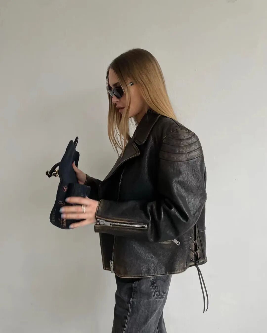 那么,该怎么选呢?想要 get 今年最时髦的复古皮衣,可以从这几个元素下手。