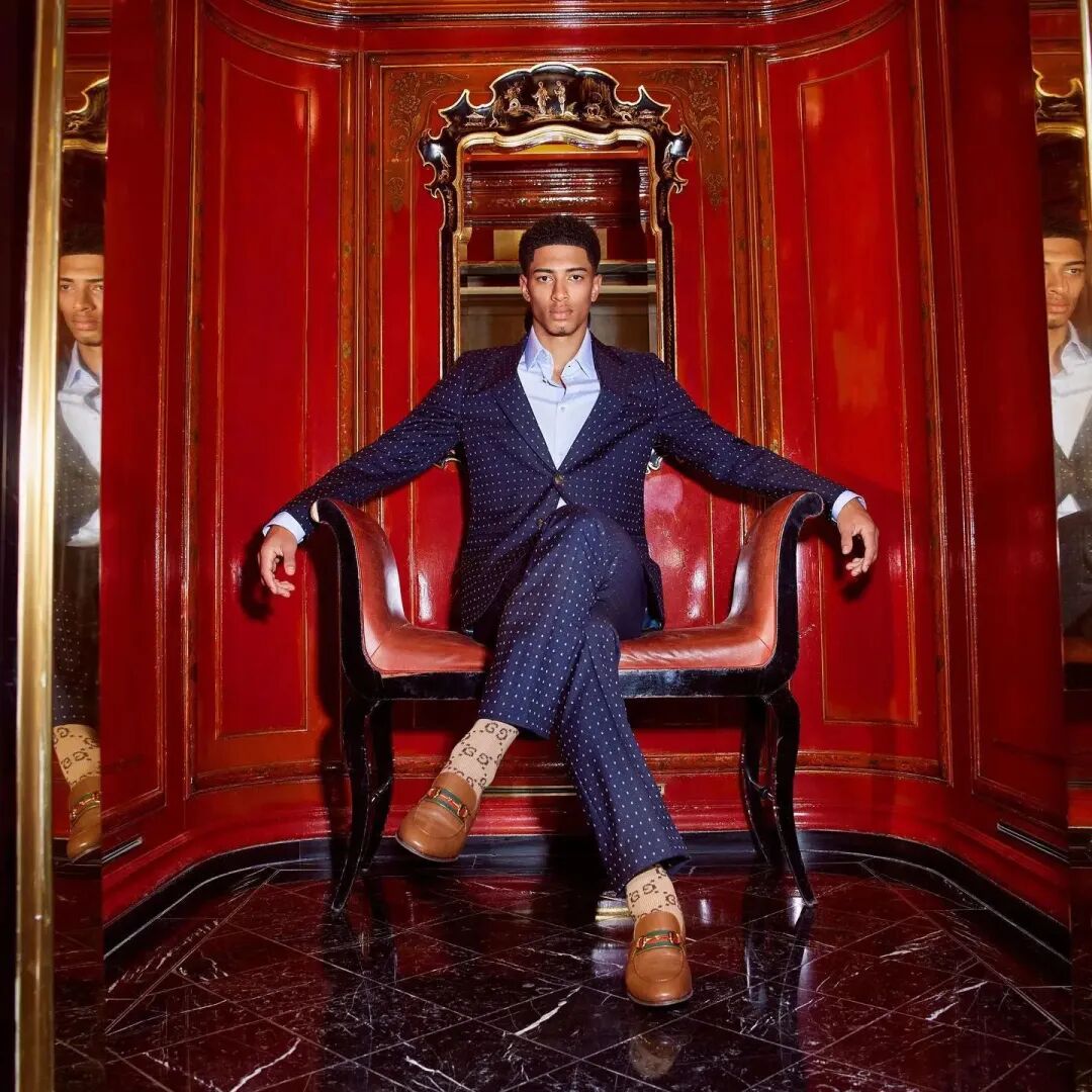 被称为 “焦糖巧克力男孩” 的 Jude Bellingham,认真起来高级,笑起来憨甜,加上 186cm 的男模身材,让时尚圈不得不爱。