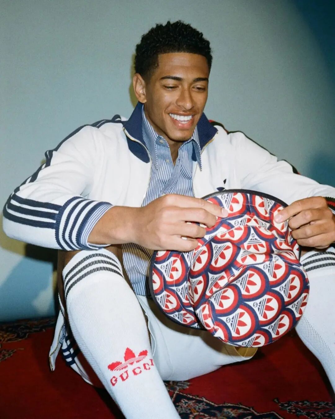 作为 Adidas Football 赞助的运动员,出镜 Gucci×Adidas 联名系列的成片一点也不含糊。