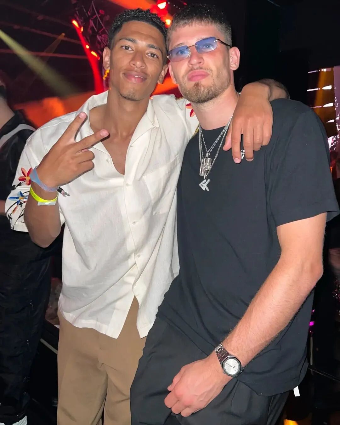 场上拥抱的Bellingham和Saka