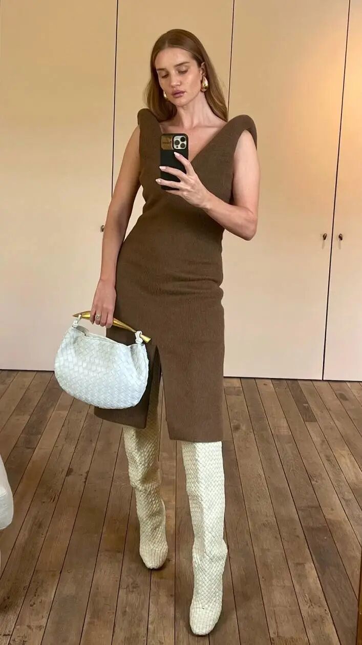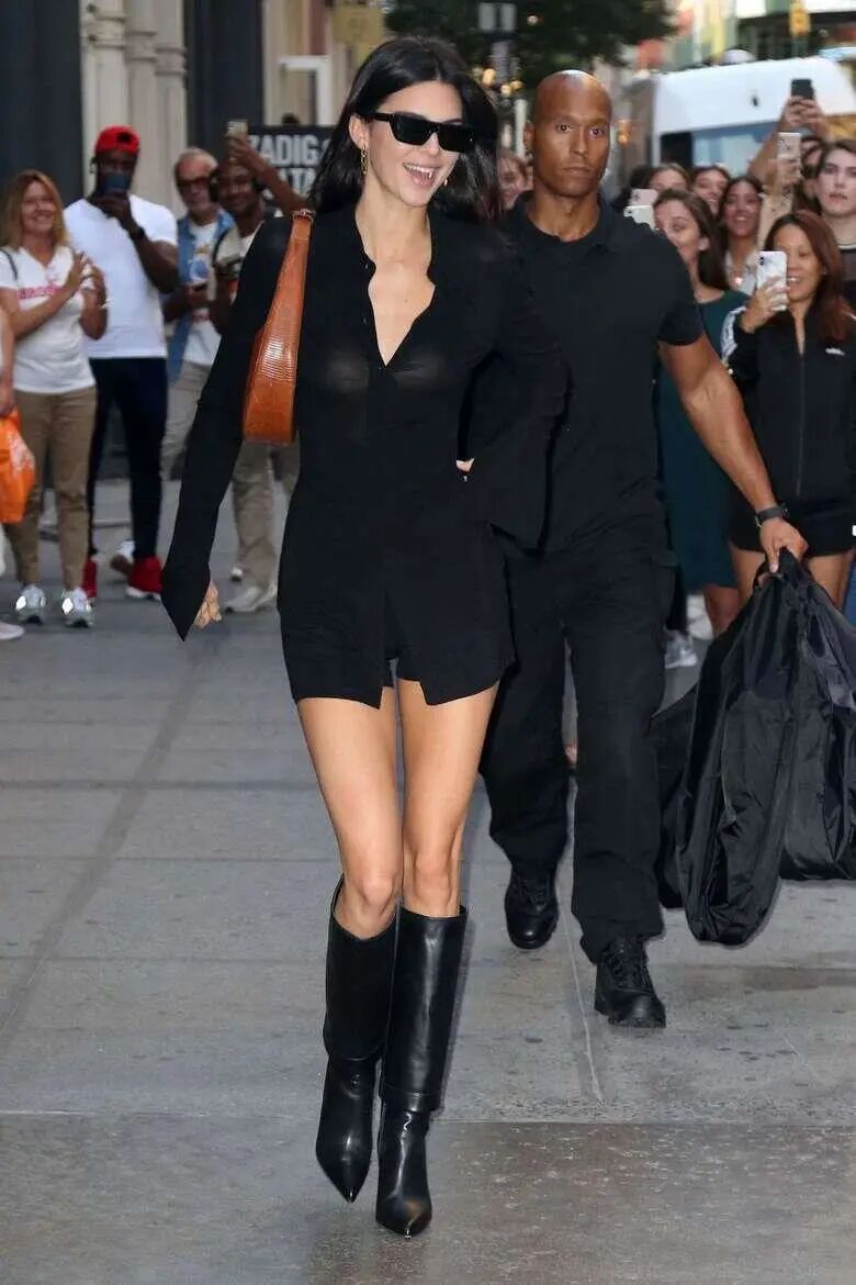 Kendall 的长靴就更多了,搭配牛仔裤、大衣,非常适合大家日常穿搭。裹身裙适合身材高挑的姑娘,可以大胆学起来。