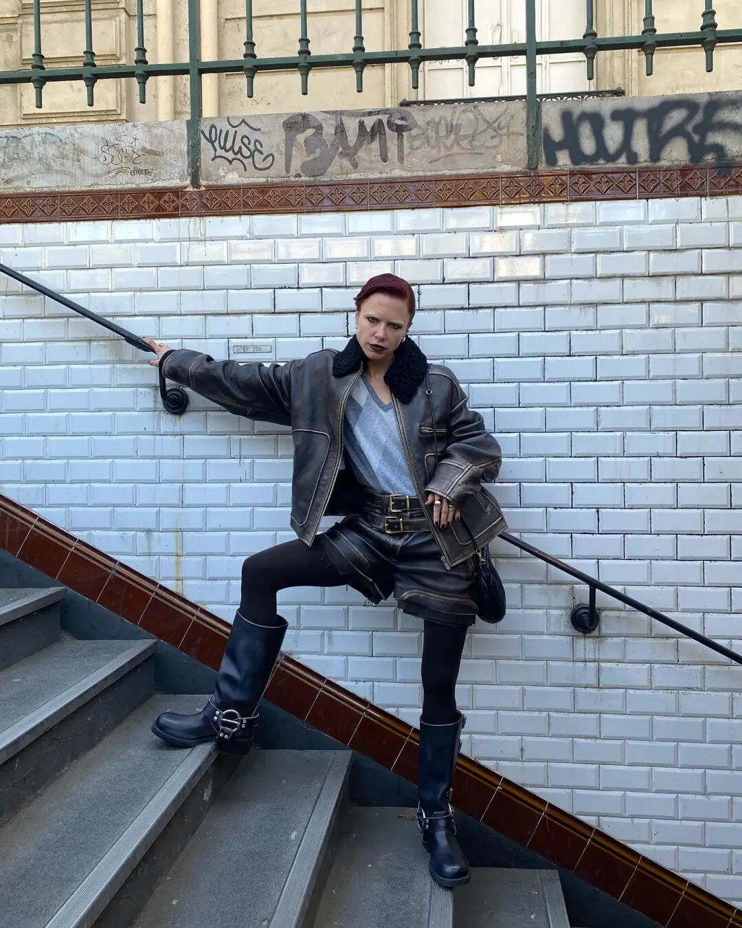 走 Grunge 路线的时尚博主 Courtney Trop 穿出靴子 “经风吹雨晒” 的叛逆。