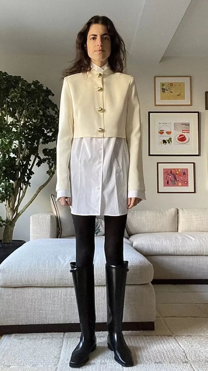虽然被吐槽 “硬、筒细、石膏腿体验感”,但正是这样给小腿穿上 “塑身衣”,呈现的腿部效果是直且细的,衬得整个人非常挺拔。据说 break in(把皮穿软)之后就会 “真香”。