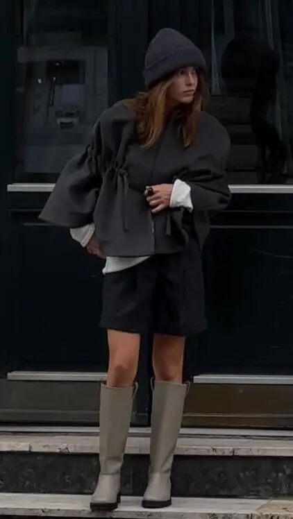 搭配针织长袜和休闲运动服,是让这双雨靴日常化的穿法。