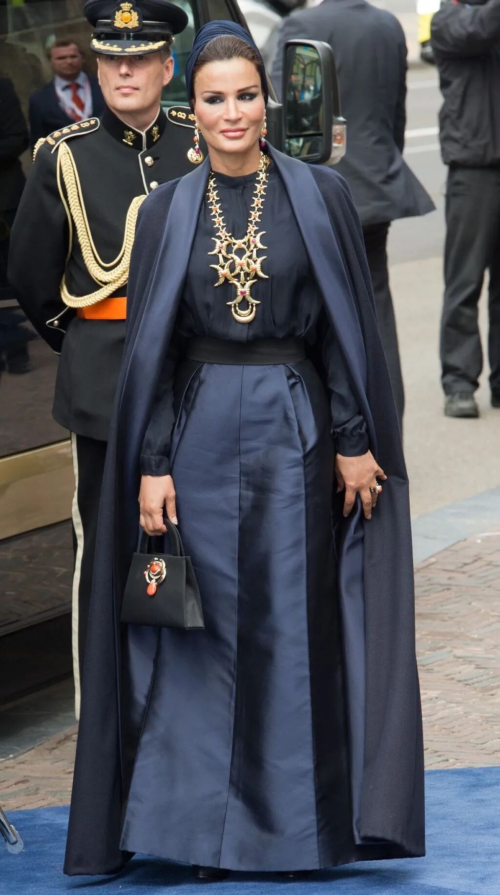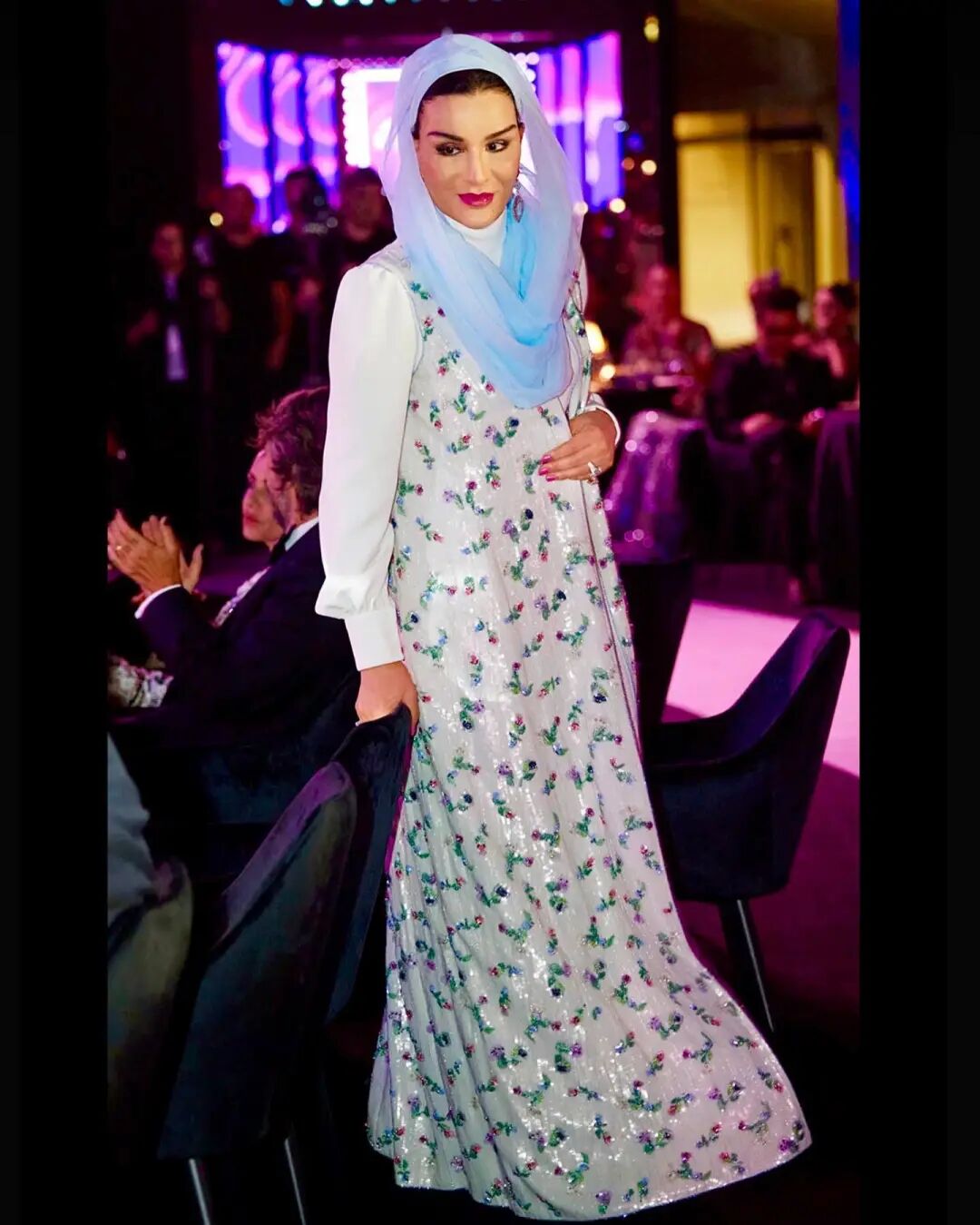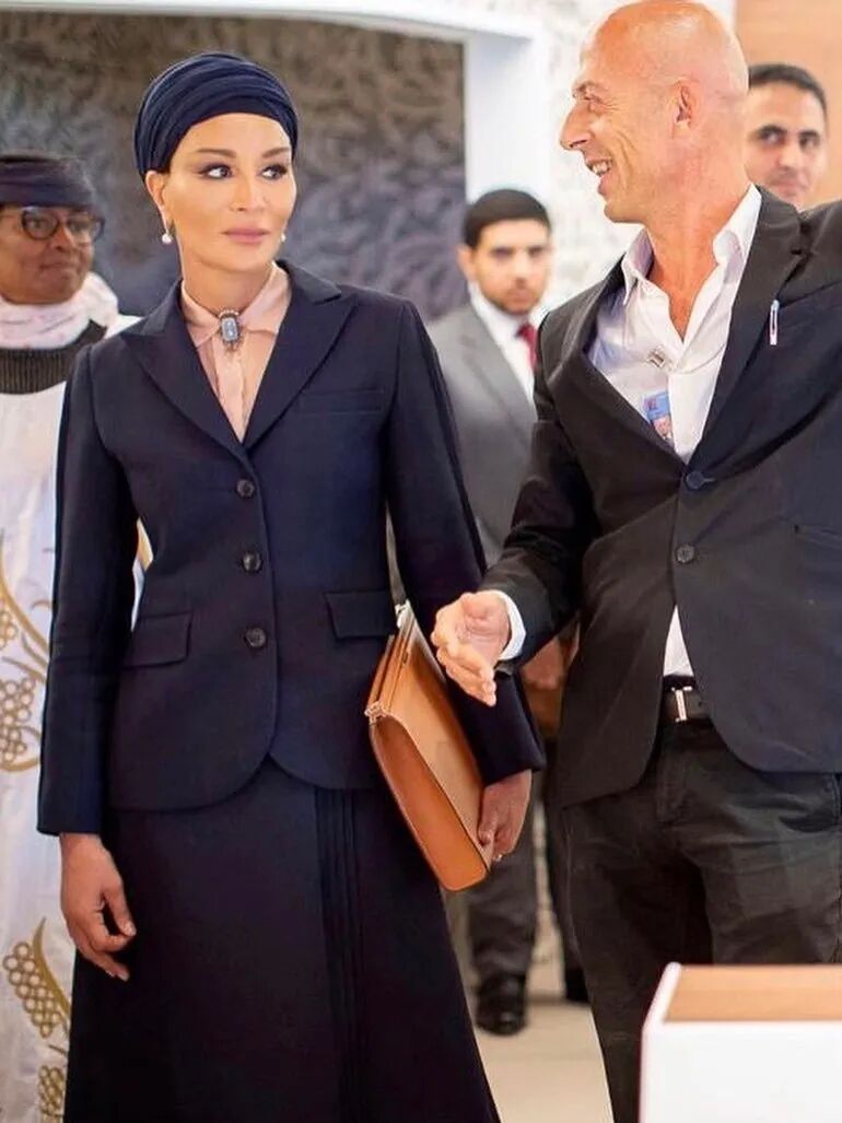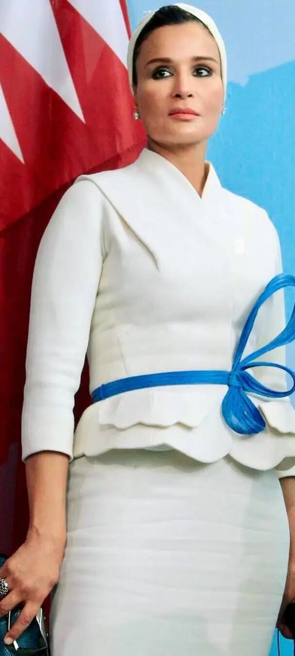 她在各大外交场合一展卡塔尔女性的风采,将头巾变成了一种时髦配饰,搭配各种高级定制,形成了一道靓丽的风景。