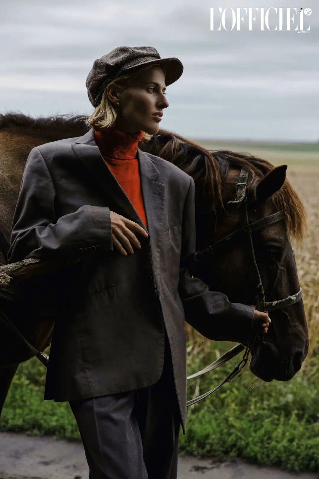 暖色调的色彩很显气色,可以选择一件洋红色高领毛衣作为深色大衣的内搭,漏出领口的一点点红色。