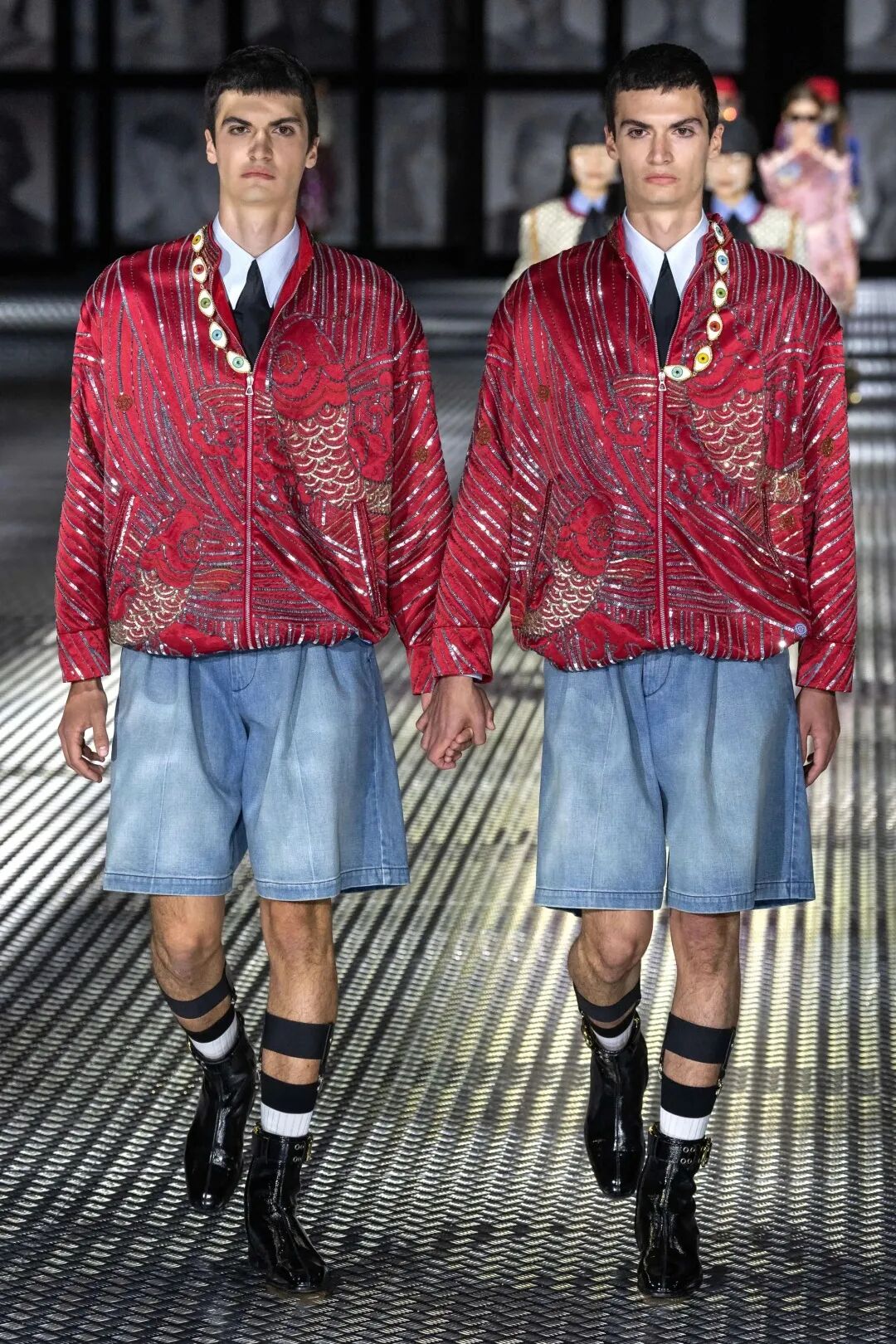 这抹出挑的色彩很受 Alessandro Michele 的喜爱,他为 GUCCI 带来的最后一季作品——震撼双胞胎大秀中,洋红色单品不少,并且为大家提供了很好的配色思路:搭配高饱和度的蓝色、紫色、金色、粉色,都能衬托出洋红色的耀眼。