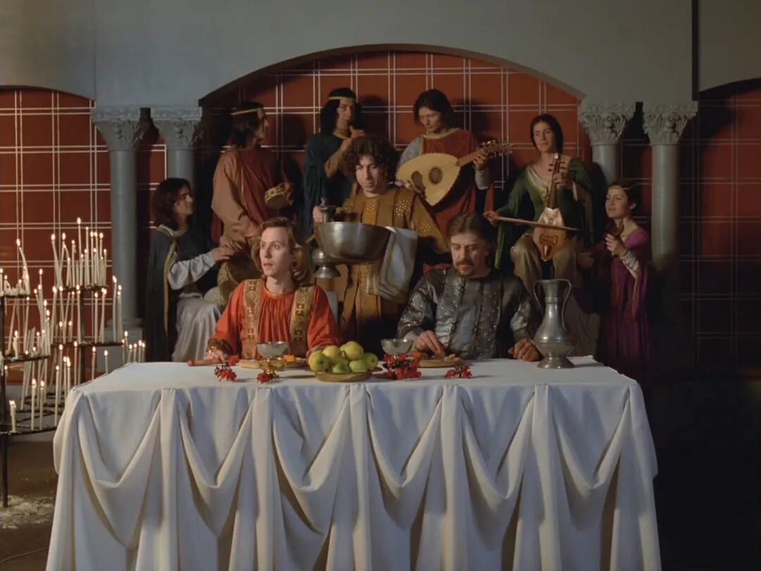 上世纪 70 年代侯麦的电影《帕西法尔》以洋红色为主色调,每一个画面都能感受到神秘的中世纪古老传说。