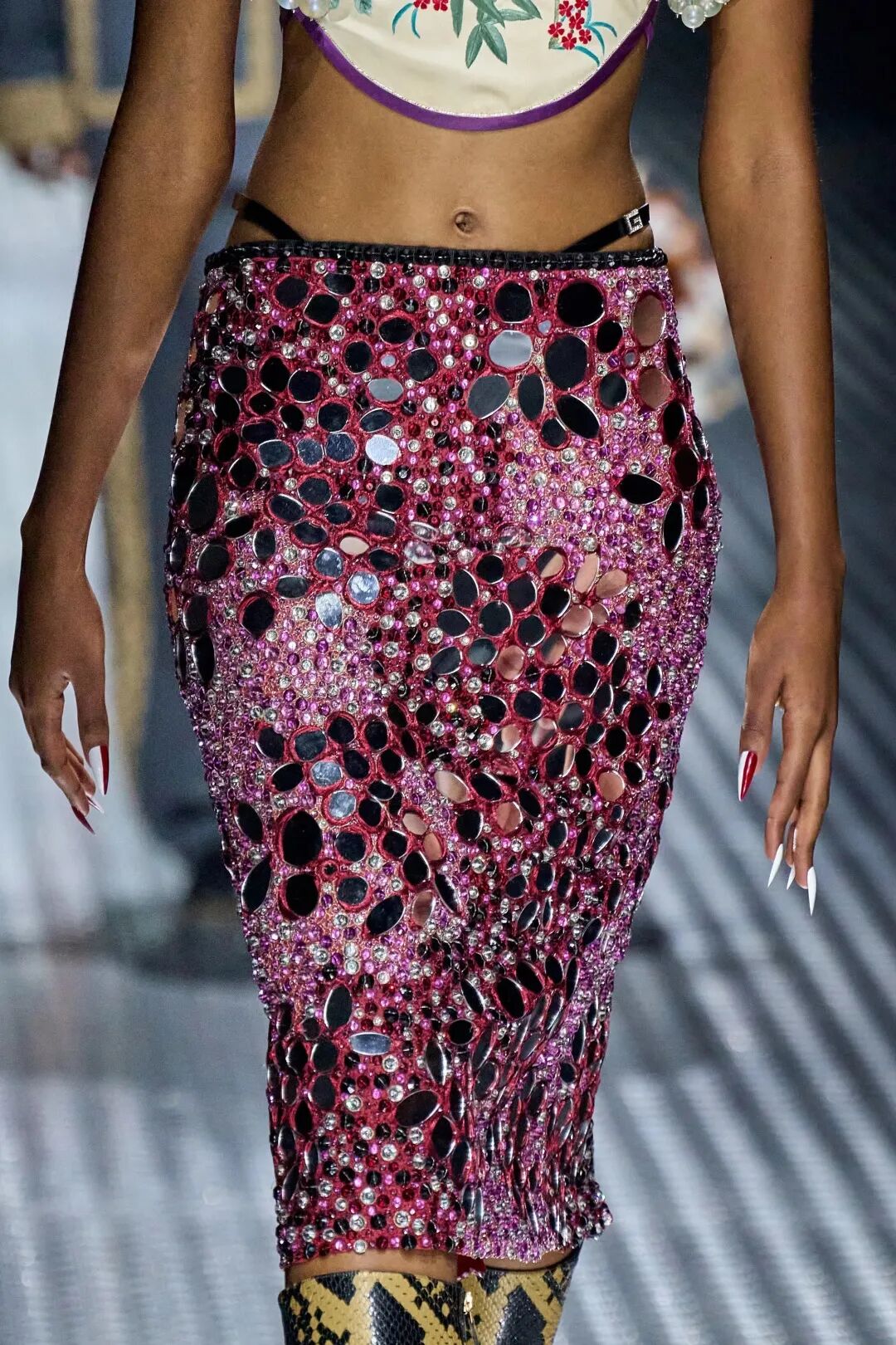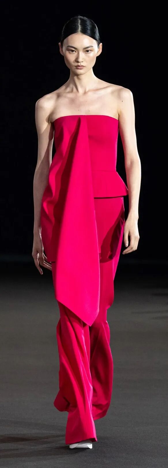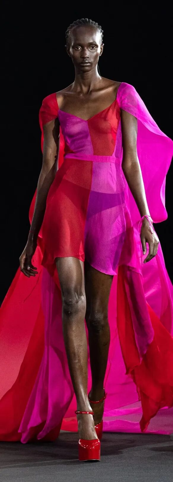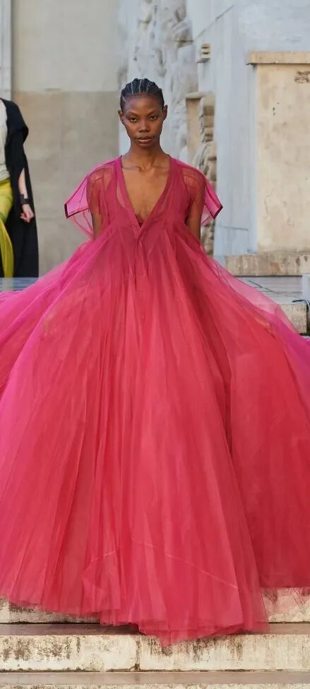 一向走暗黑路线的 Rick Owens 也在 2023 春夏系列中推出了不少洋红色单品。长靴、礼服、