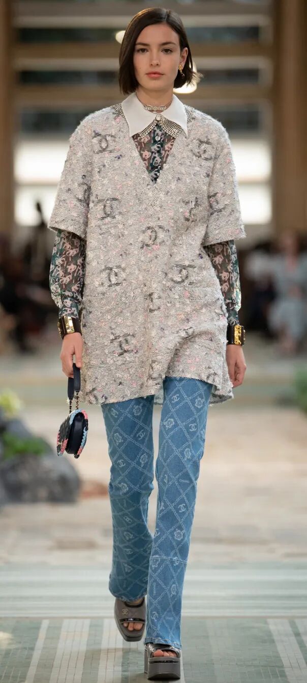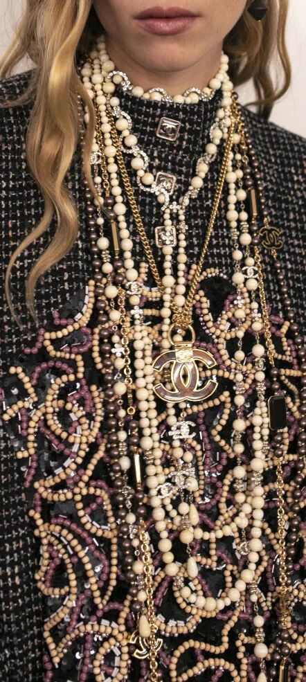 在这一季中,面料是最直观展现主题的部分:丰富的植物图案、线条与几何形状,大量的暖色调、亮片与闪耀的香奈儿标志挂饰,与细腻的蕾丝相交织。