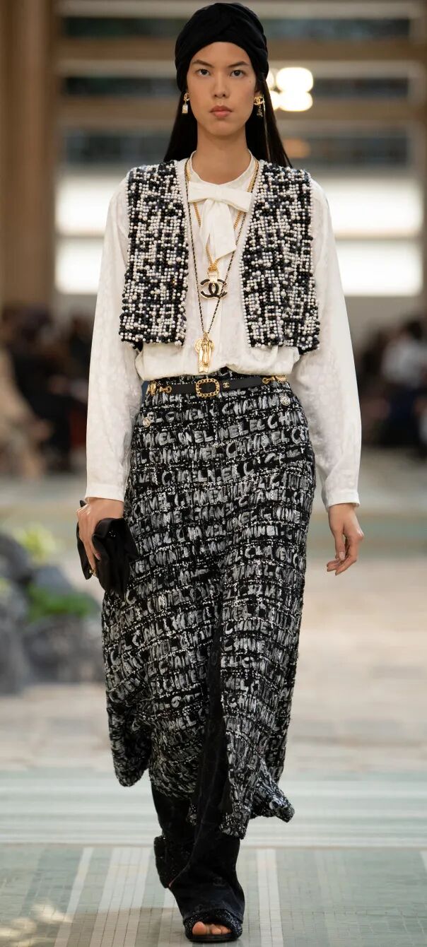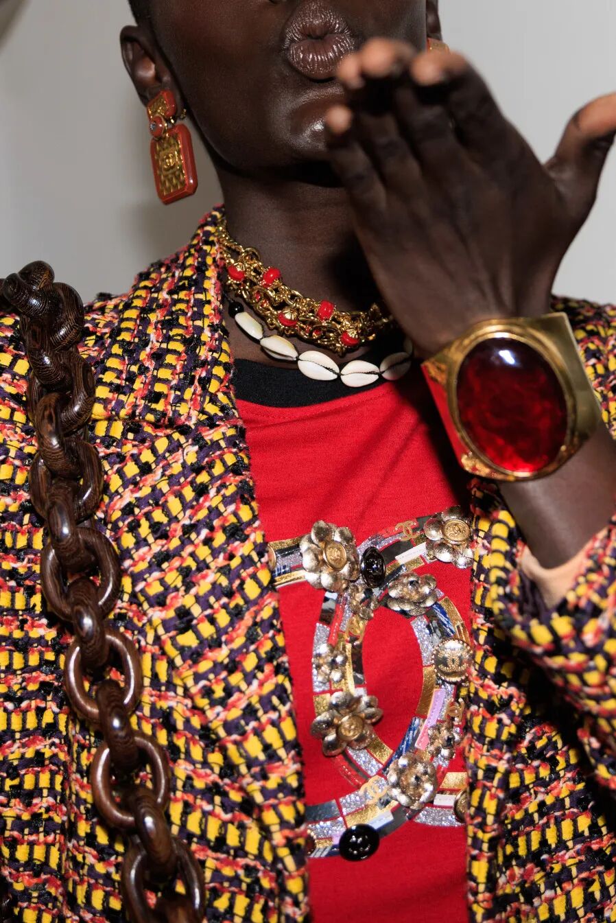 来自非洲的色彩、串珠工艺启发了 CHANEL 的面料,斜纹软呢有了新的模样。