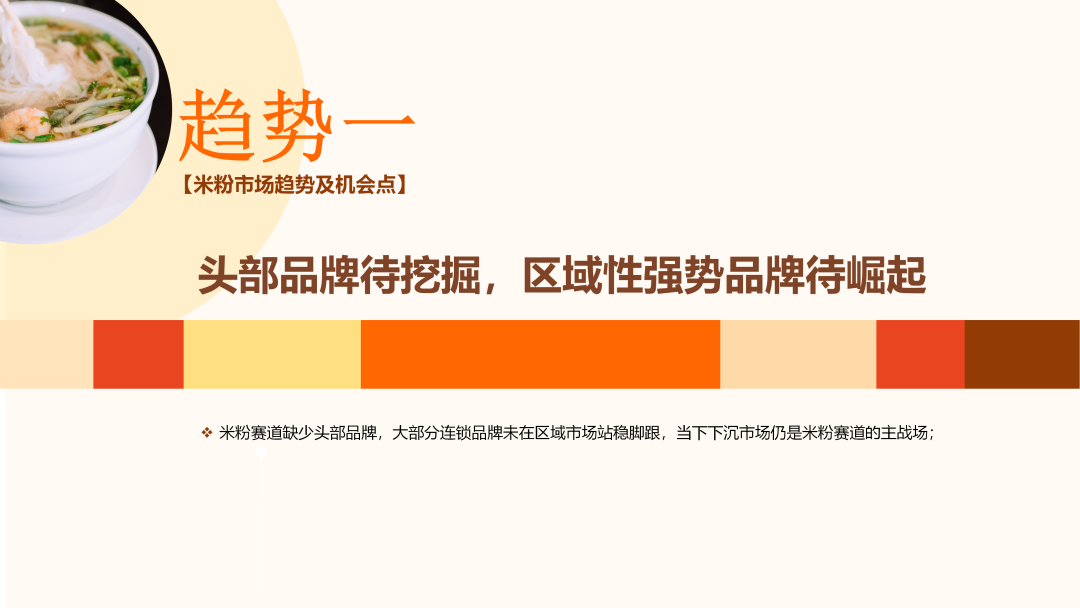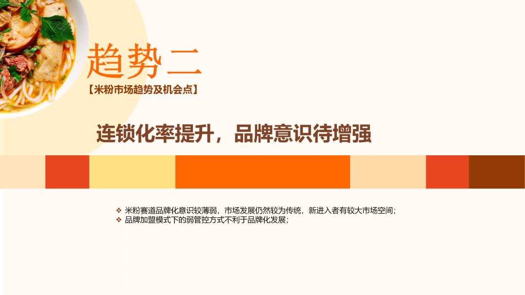 和面条品类门店数规模分布相比,米粉品类中型连锁品牌占比较低,连锁化率发展仍处于面条品类早期。