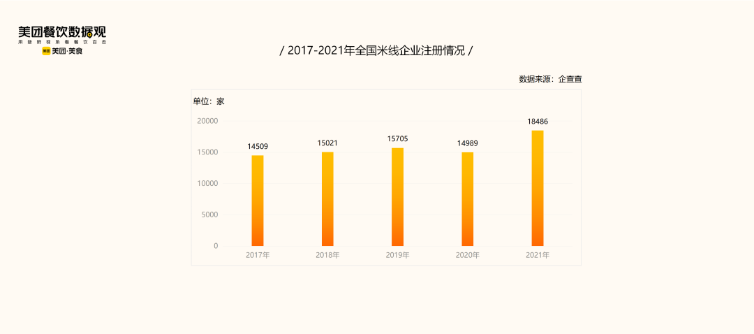 企查查数据显示, 2021年上半年,新注册米粉企业就已达到近2万家。早在2020年国内米粉市场规模突破1千亿;米粉现有市场存在整体发展相对落后,仍以个体户、夫妻老婆店为主,创新性乏力,品牌化程度低等问题。
