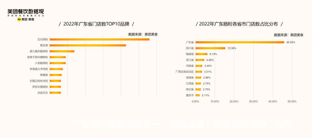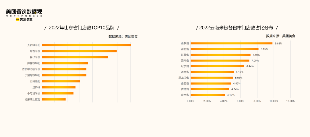 广东作为人口第一大省,2022年米粉门店数最多的城市前三都在广东,其次是广西、云南等米粉大省;米粉品类门店大部分集中在南方省市,北方以陕西省、山东省为首。