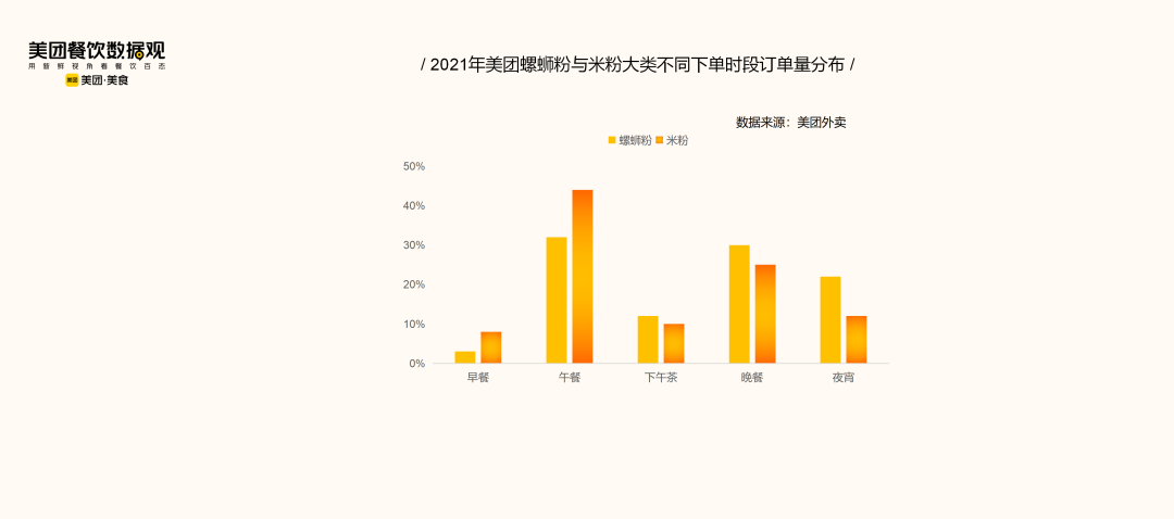 米粉就餐场景较为丰富,不仅正餐时段必备,早餐、下午茶、夜宵时段也都会有它的身影;