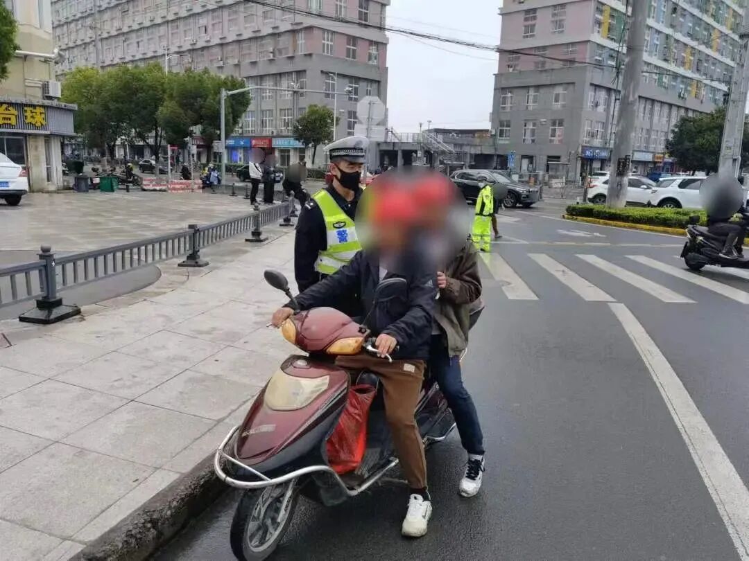 违法行为:实施驾驶电动自行车不按规定载人的违法行为。